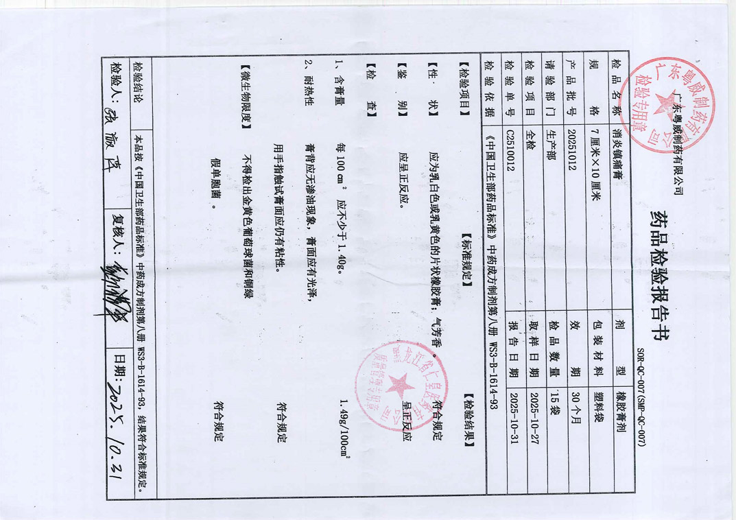 消炎镇痛膏20251