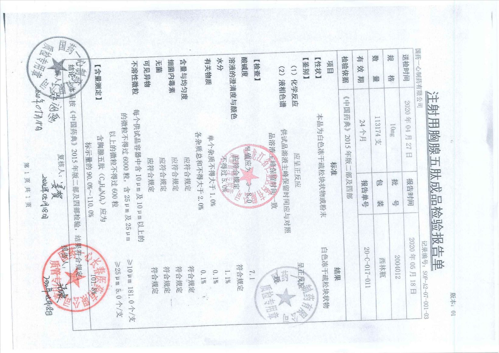 _注射用胸腺五肽20