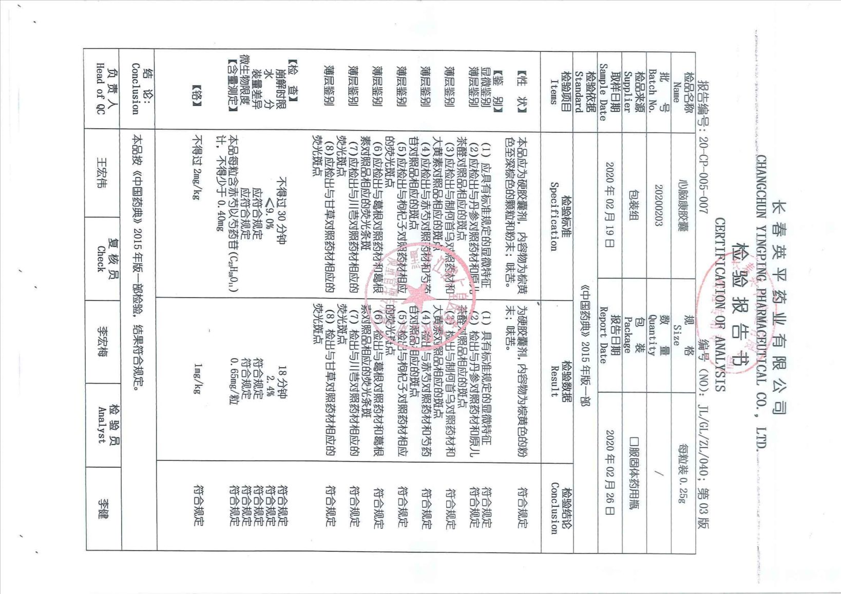 _心脑康胶囊2019