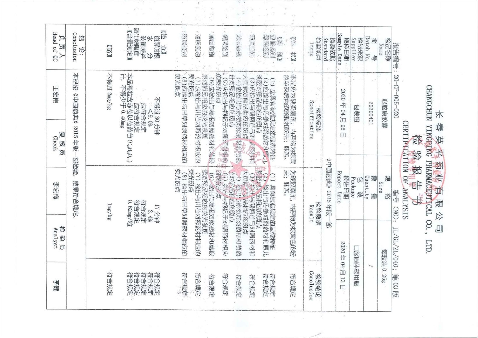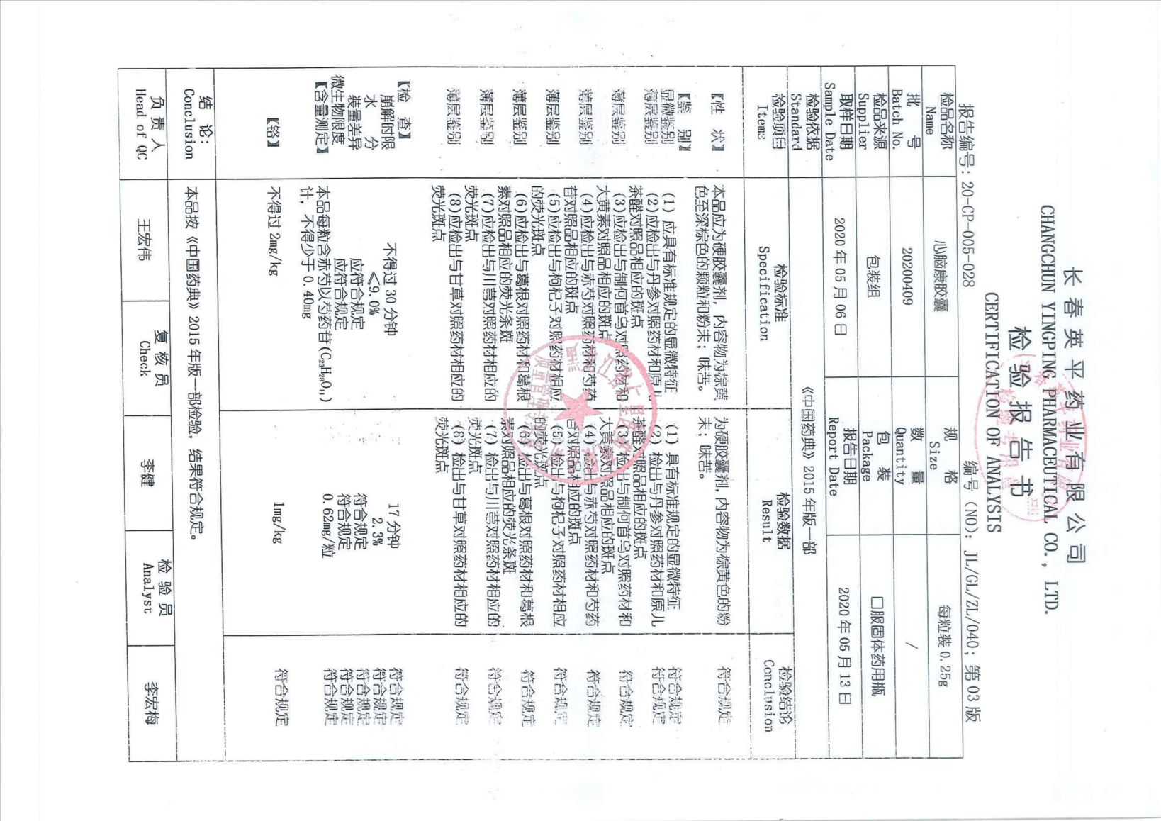 _心脑康胶囊2020