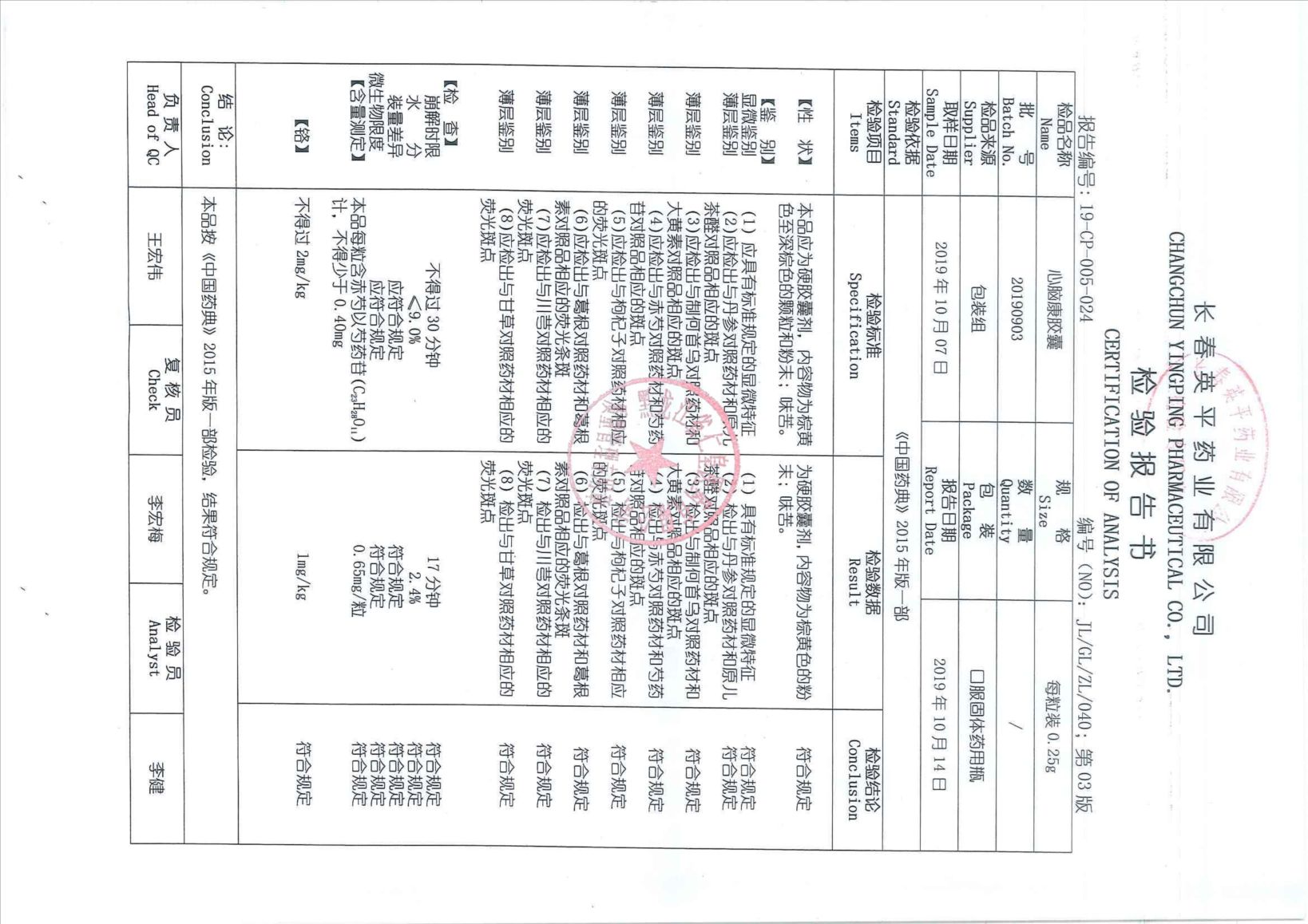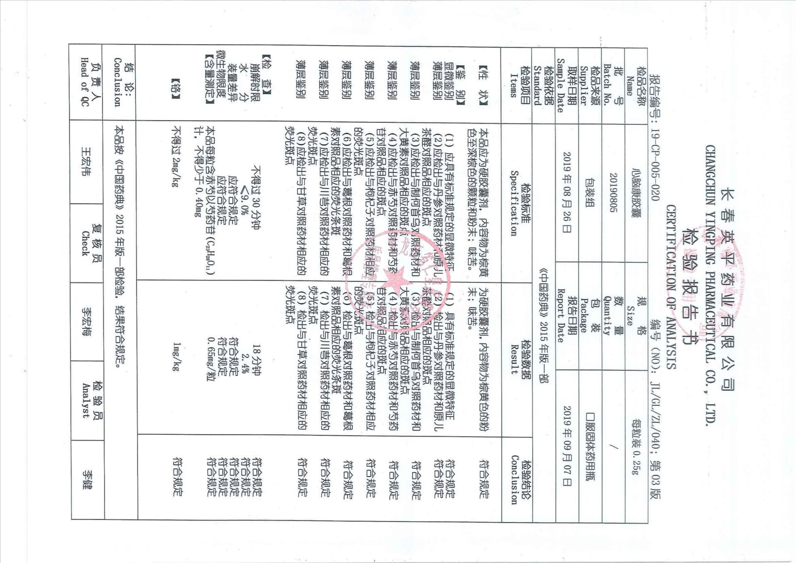 _心脑康胶囊2019