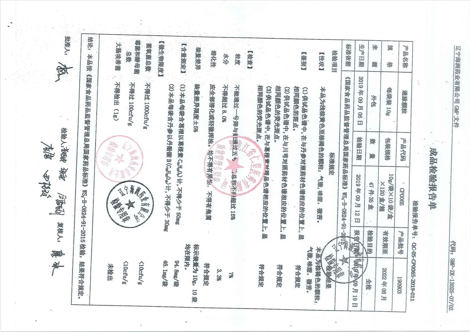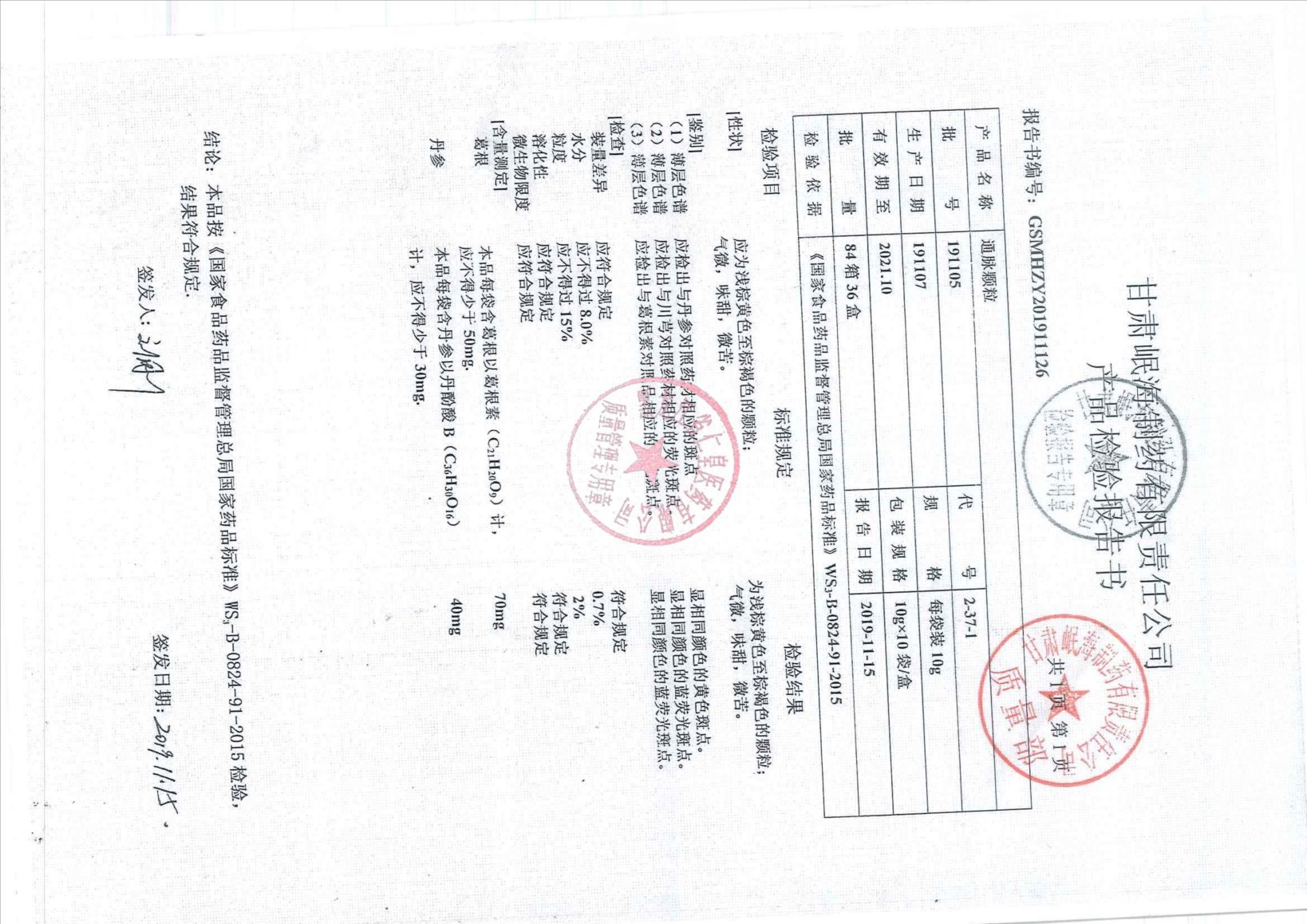 _通脉颗粒19110
