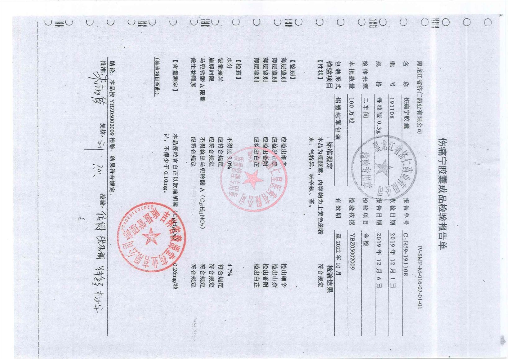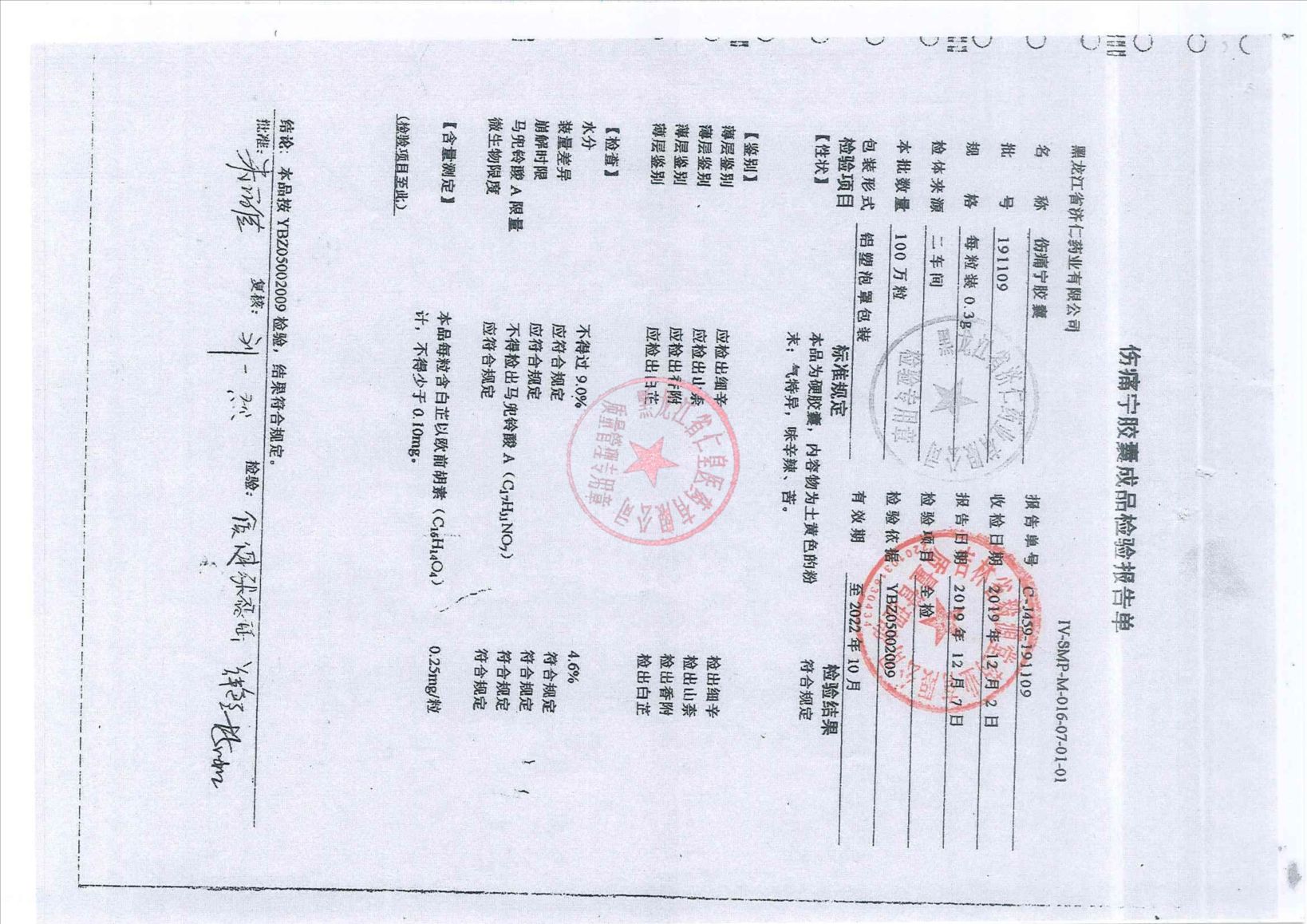_伤痛宁胶囊1911