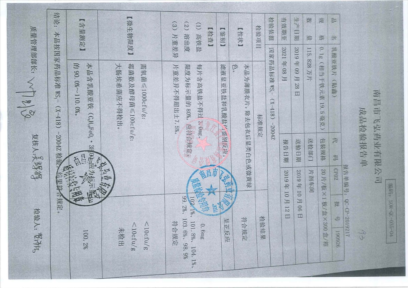 _乳酸亚铁片1909