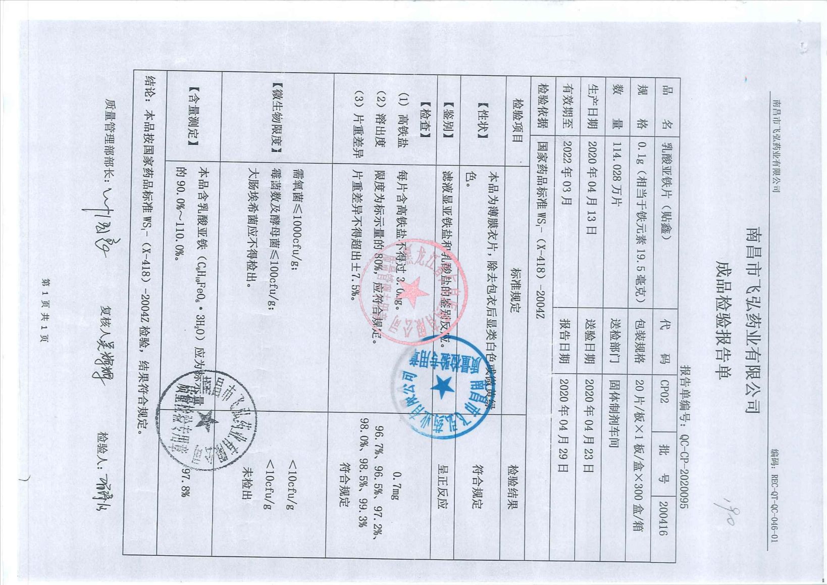 _乳酸亚铁片2004