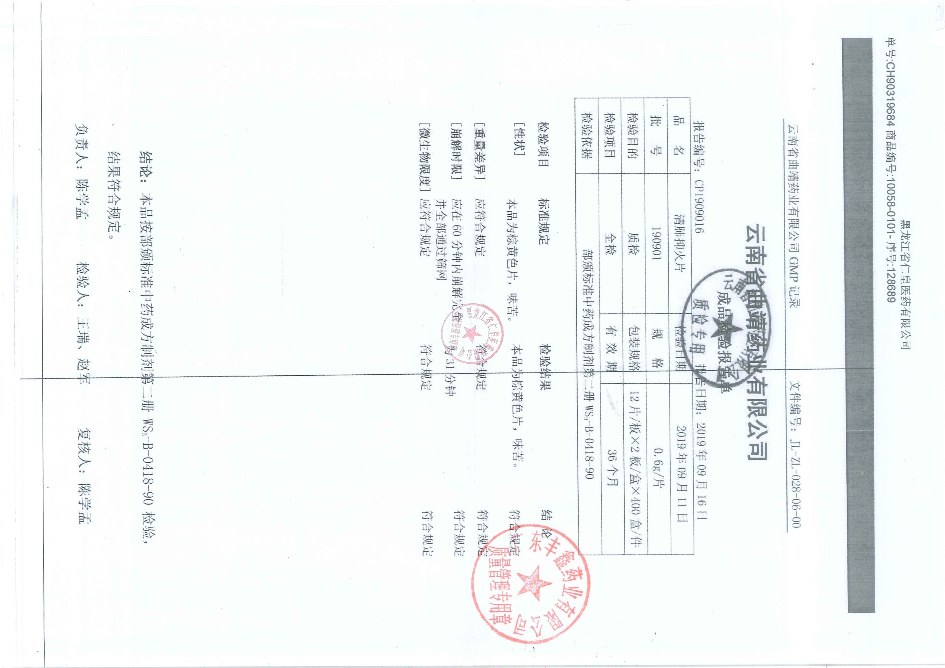 _清肺抑火片1909