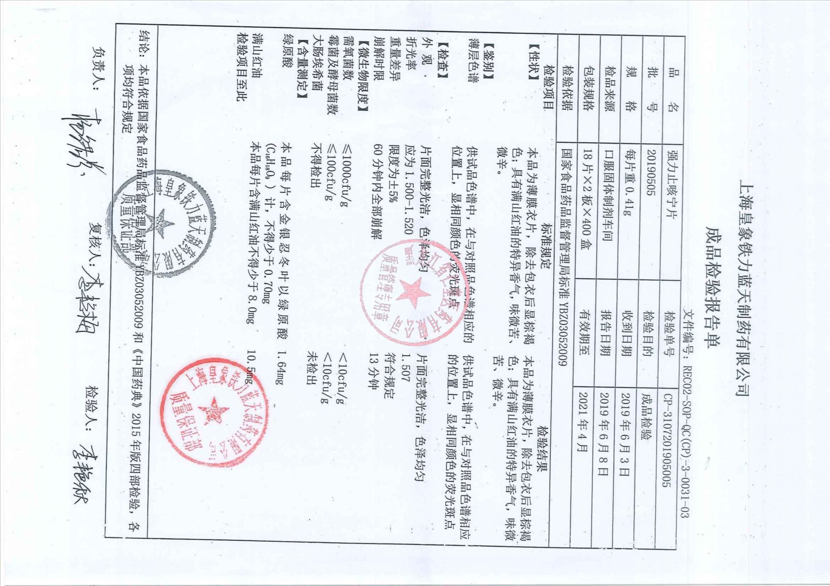 _强力止咳宁片201