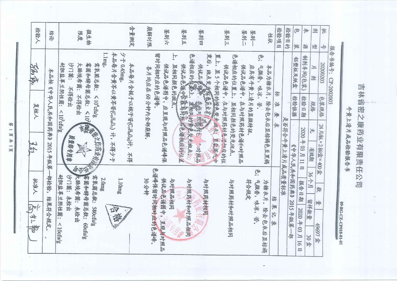 _牛黄上清片2020