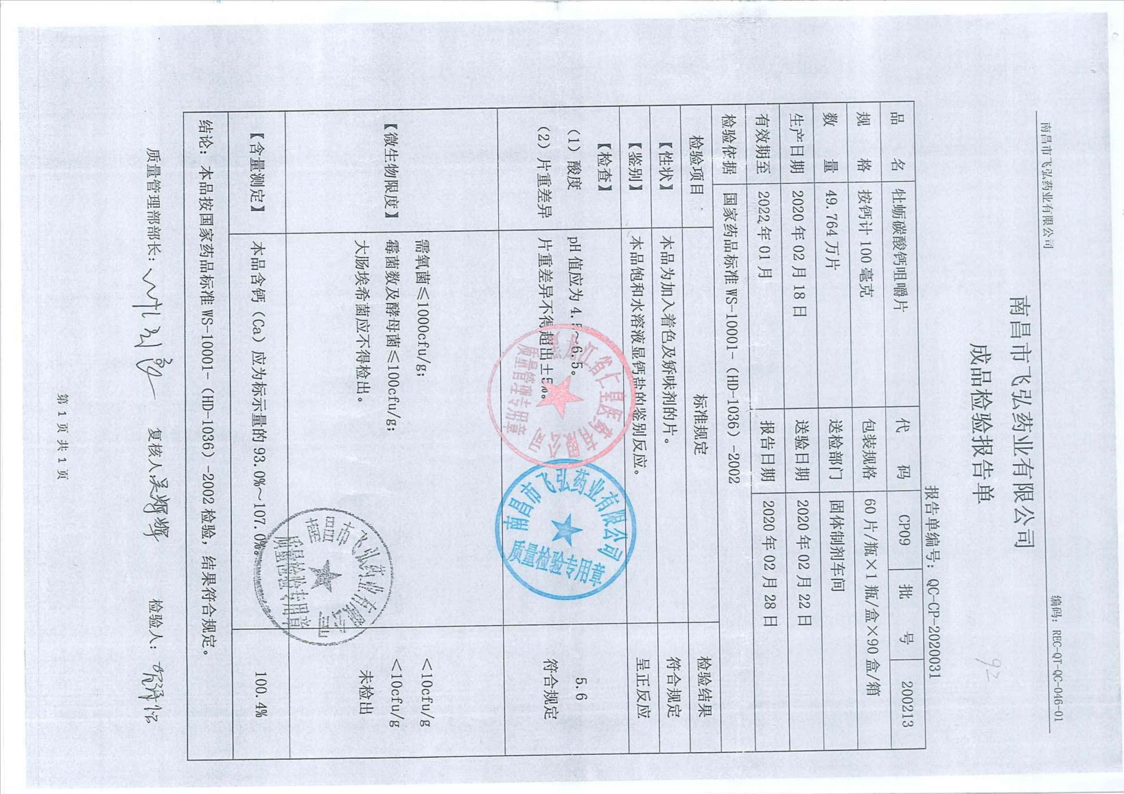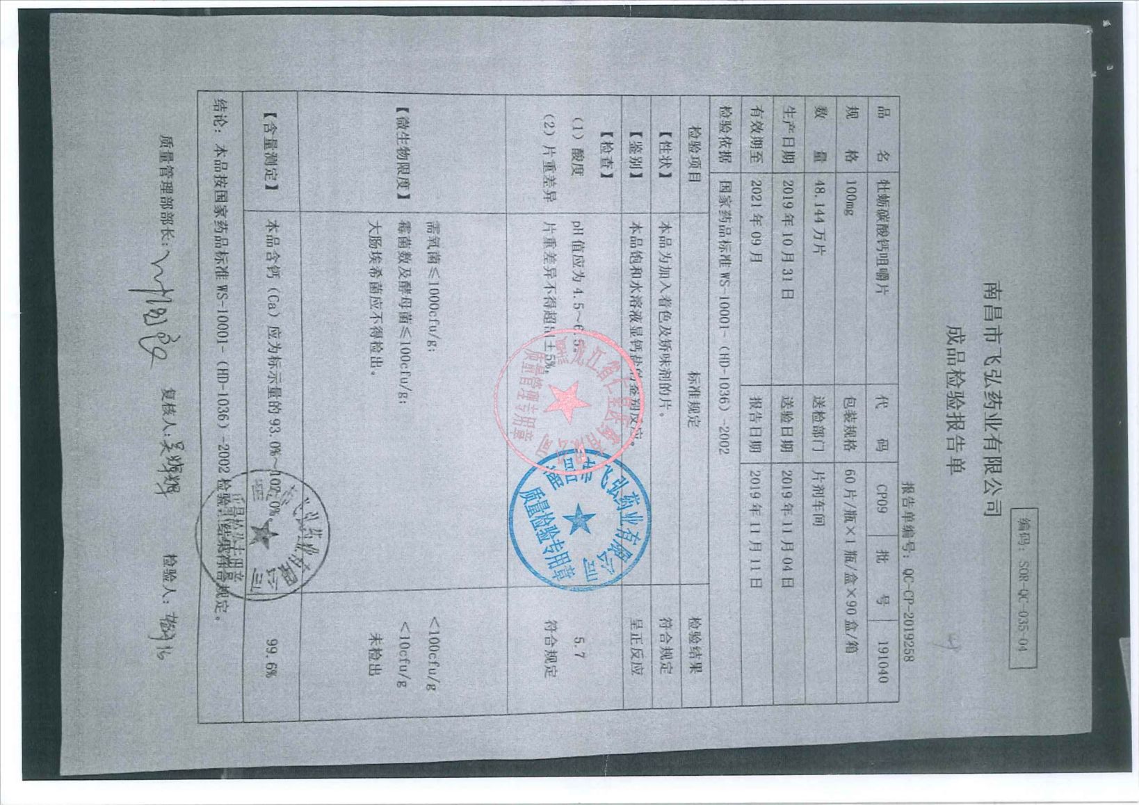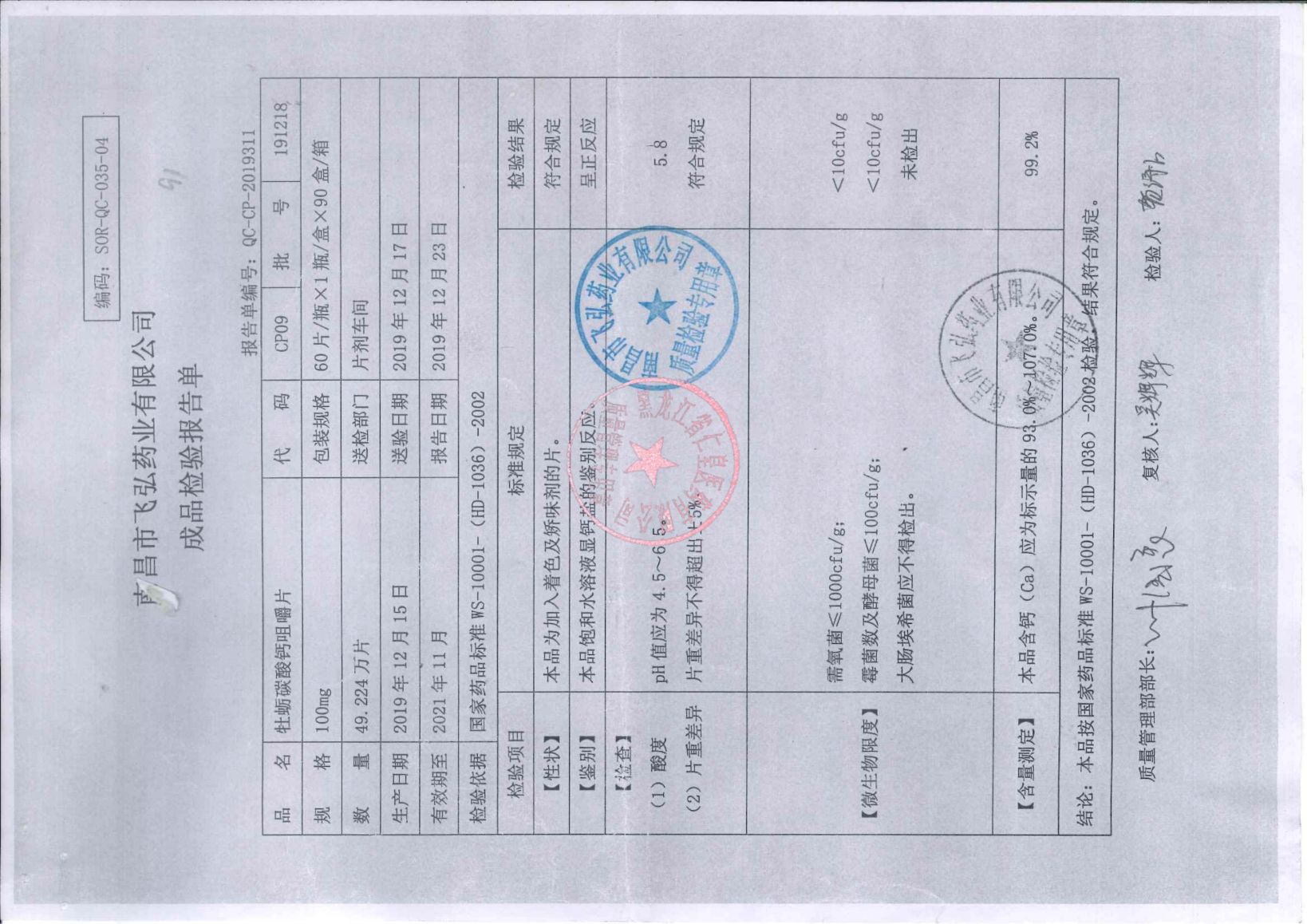 _牡蛎碳酸钙咀嚼片1