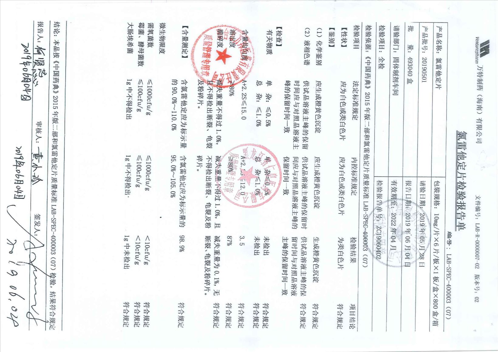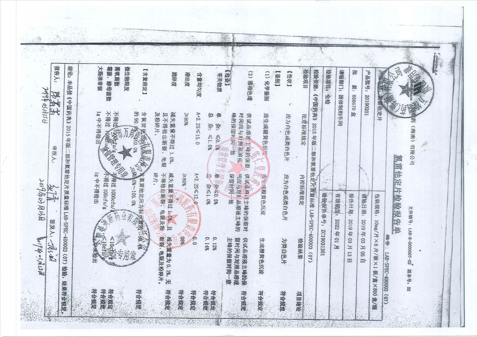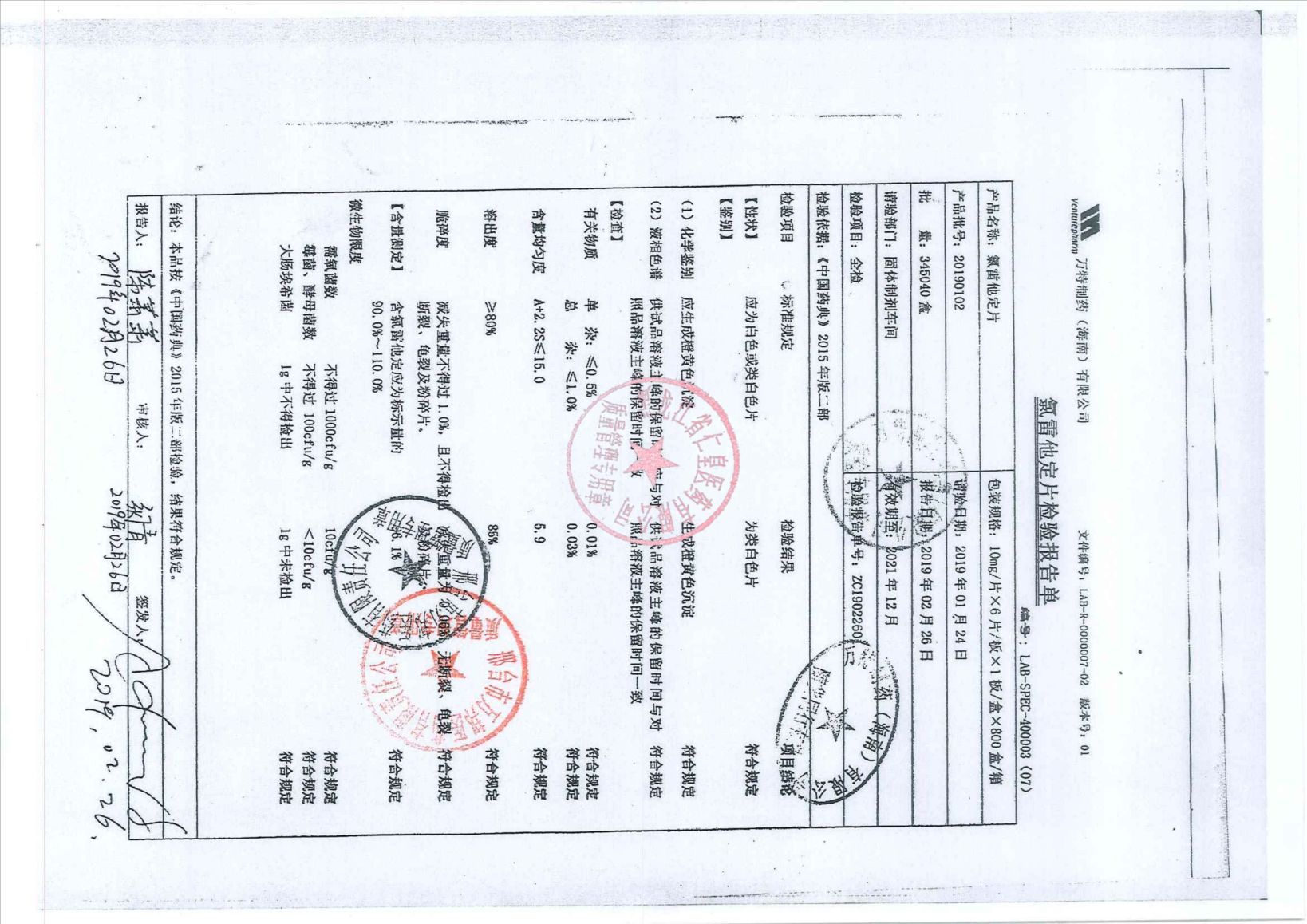 _氯雷他定片2019