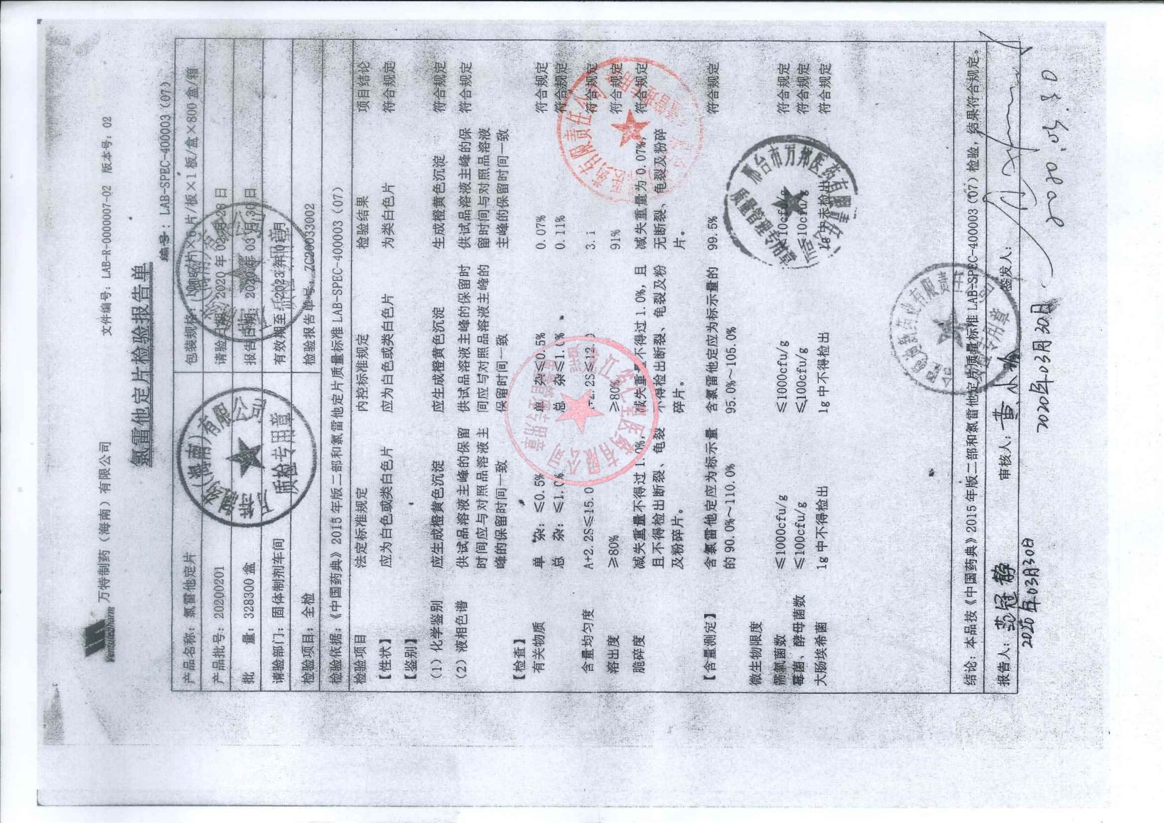_氯雷他定片2020