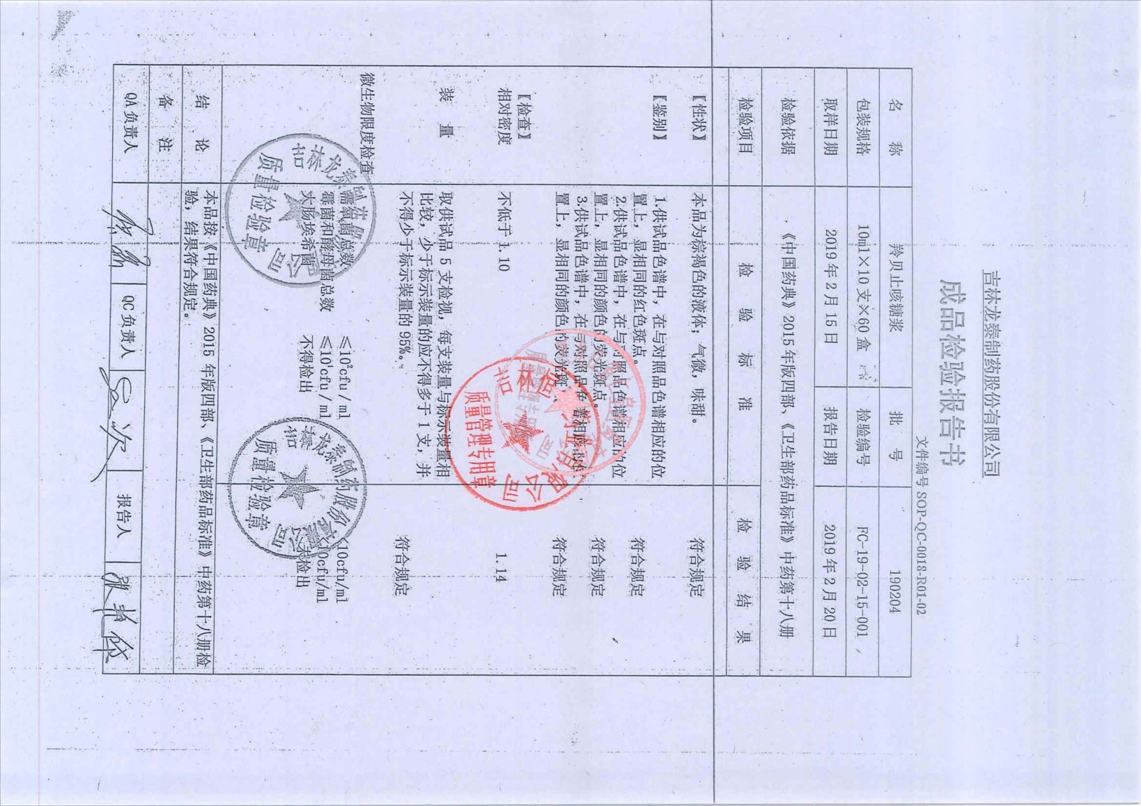 _羚贝止咳糖浆190