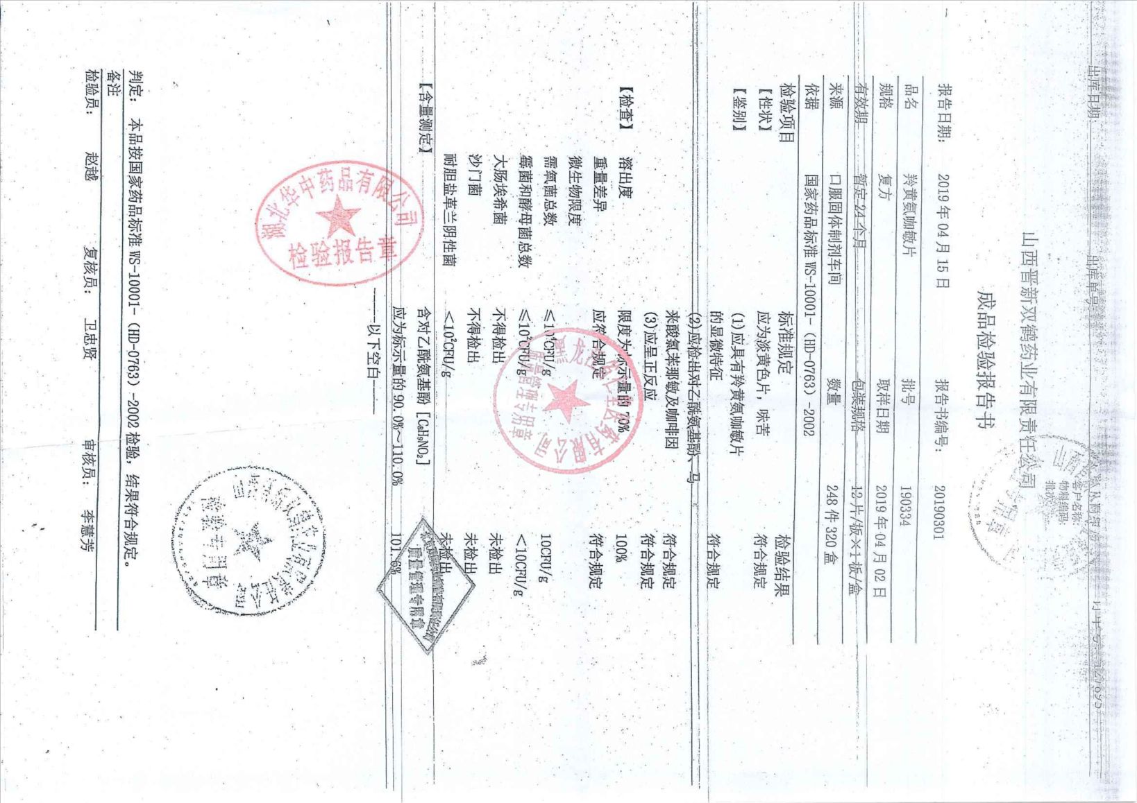 _羚黄氨咖敏片190