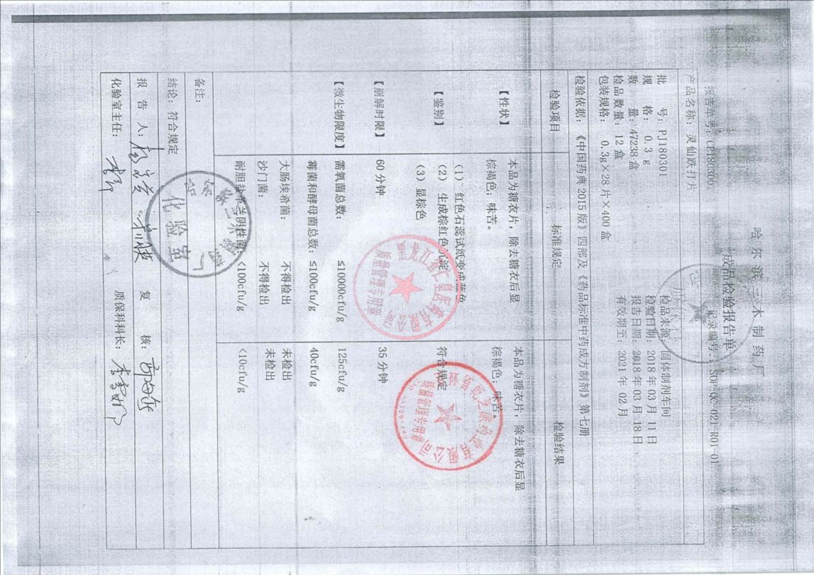 _灵仙跌打片PJ18