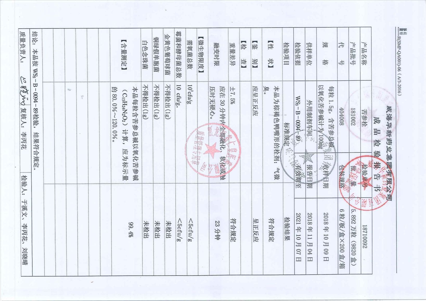 _苦参胶囊20181