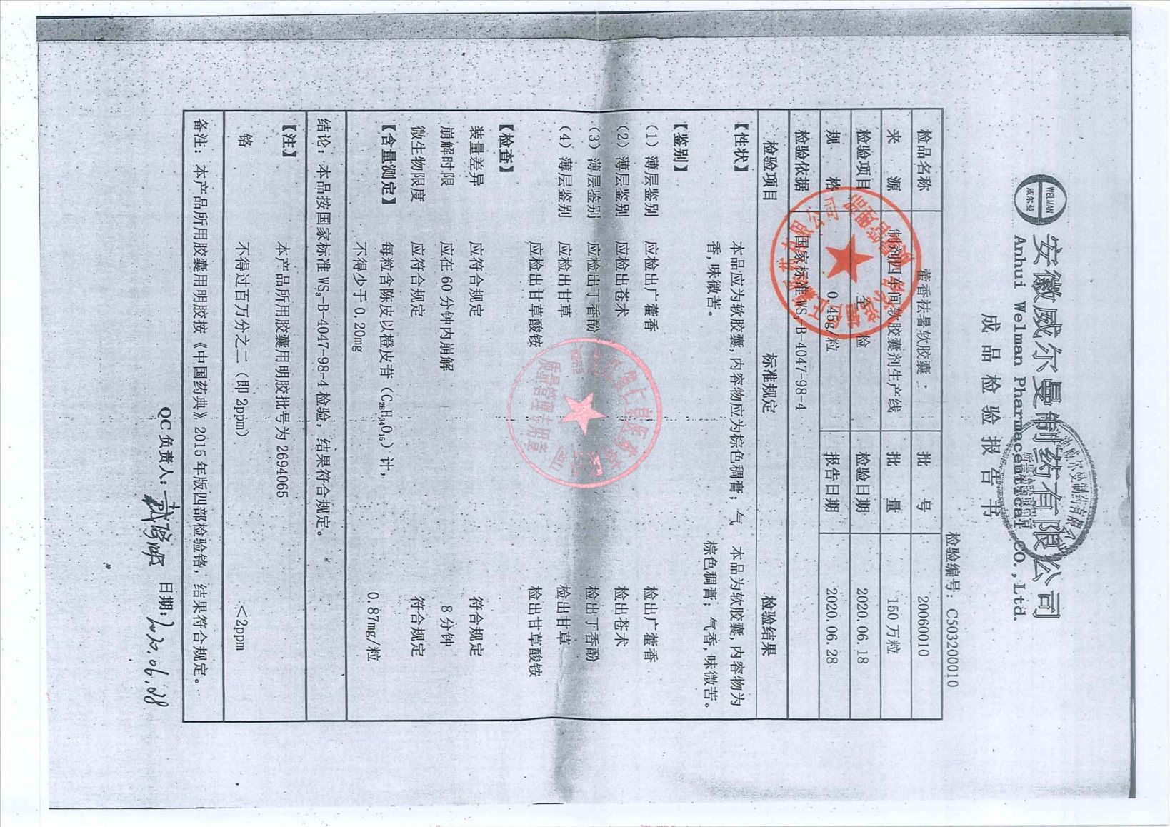 _藿香正气片2018
