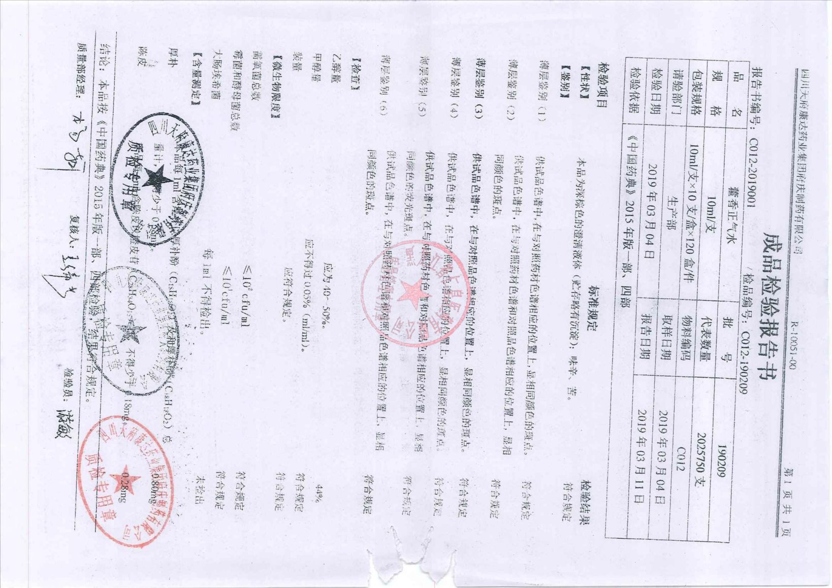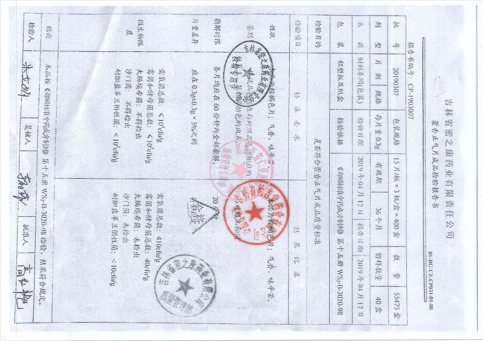 _藿香正气片2019