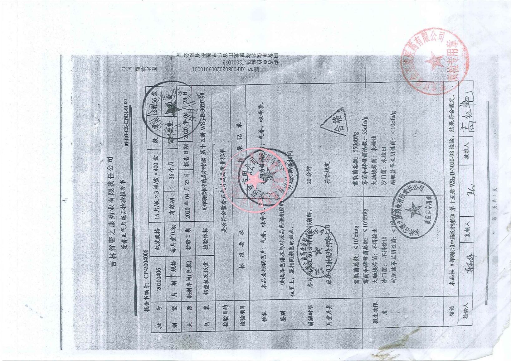 _藿香正气片2020