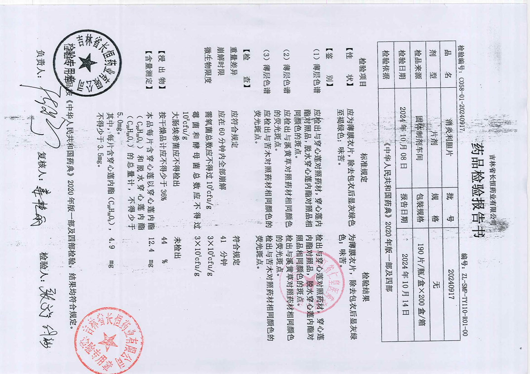 消炎利胆片20240