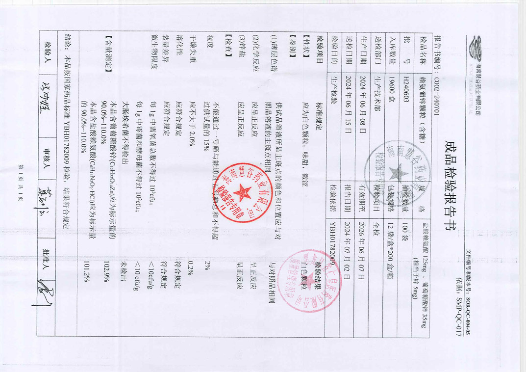 赖氨葡锌颗粒H240