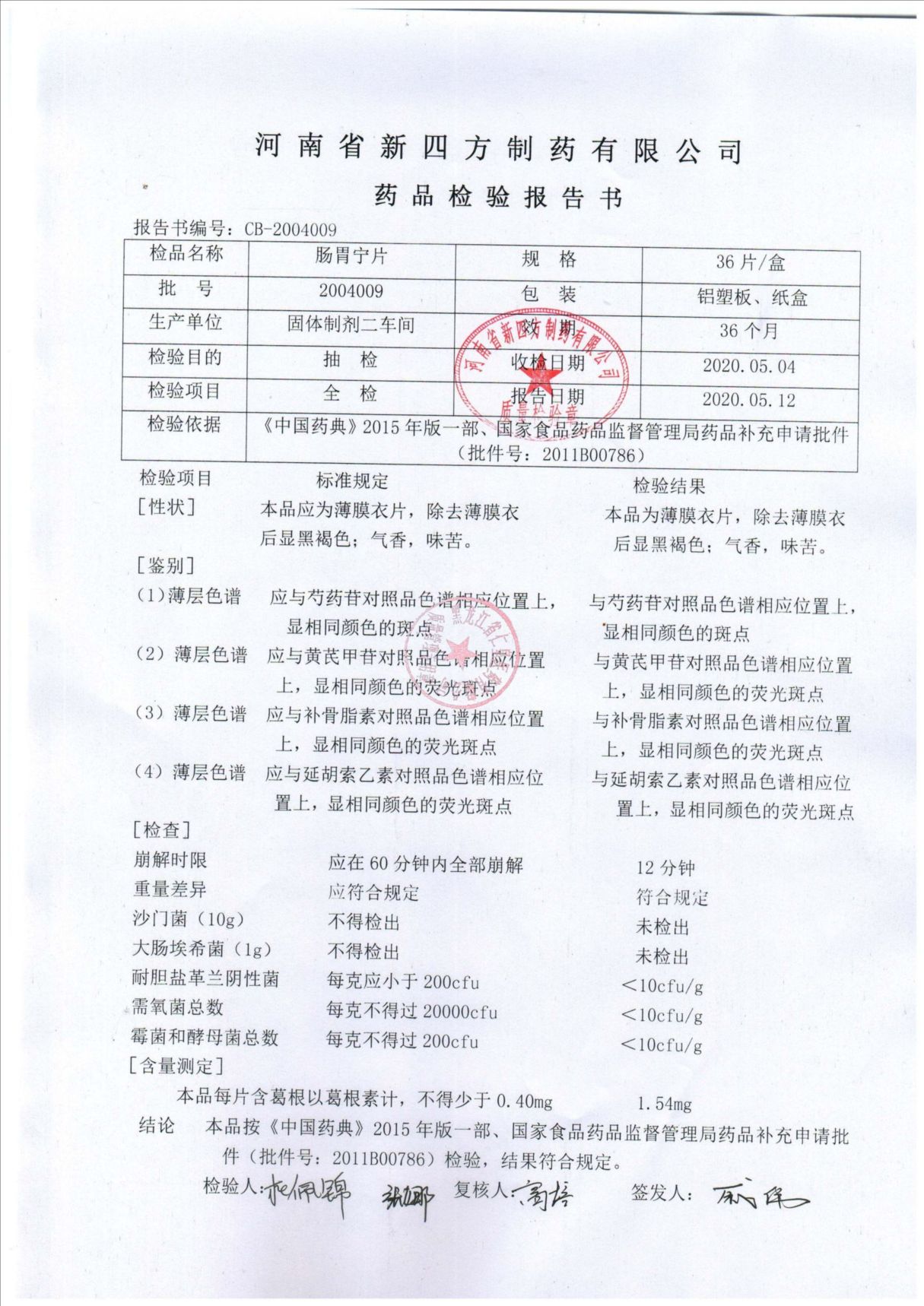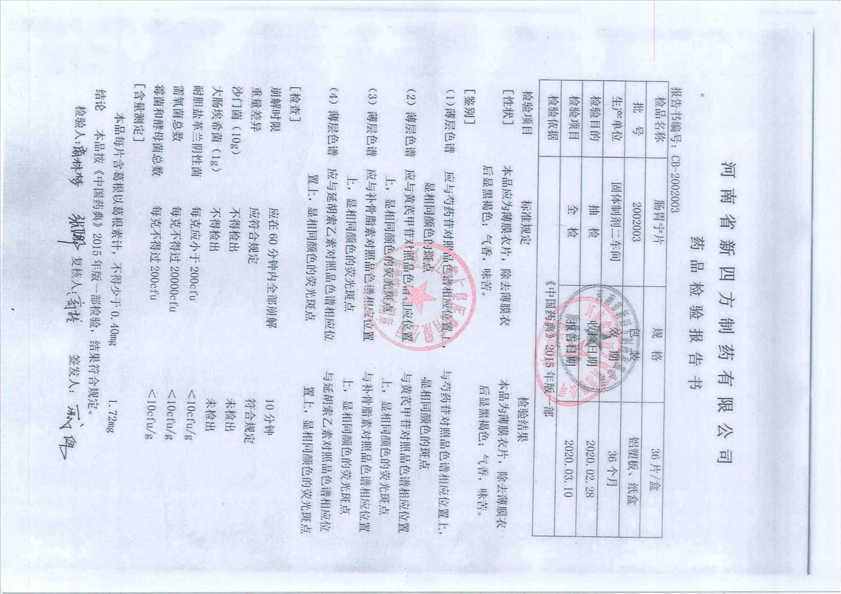 _肠胃宁片20020