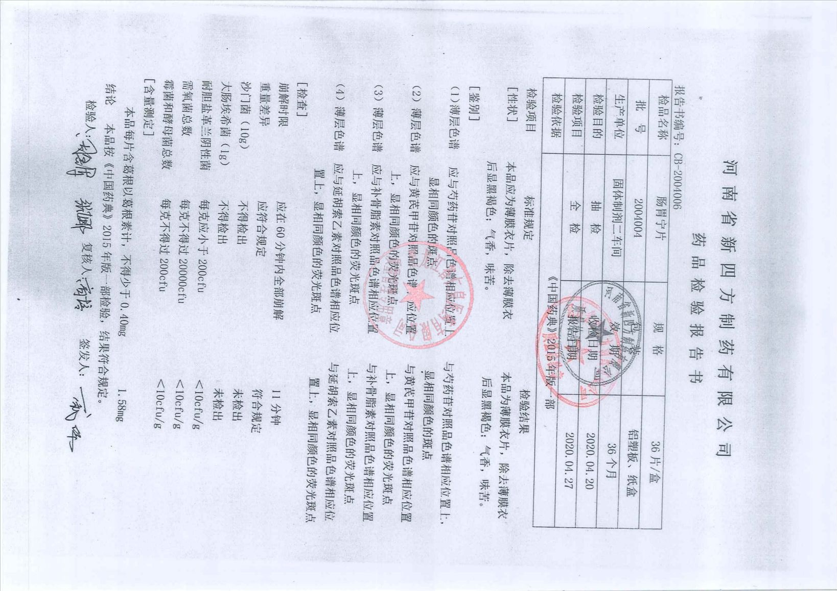 _肠胃宁片20040