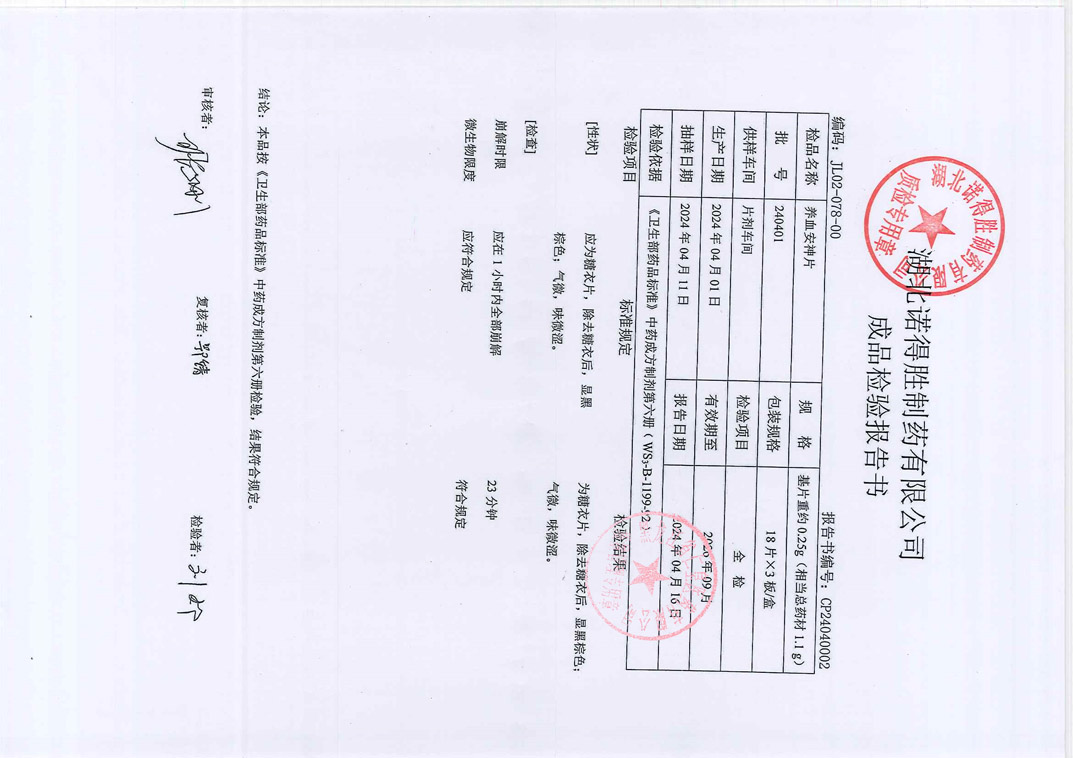 养血安神片24040