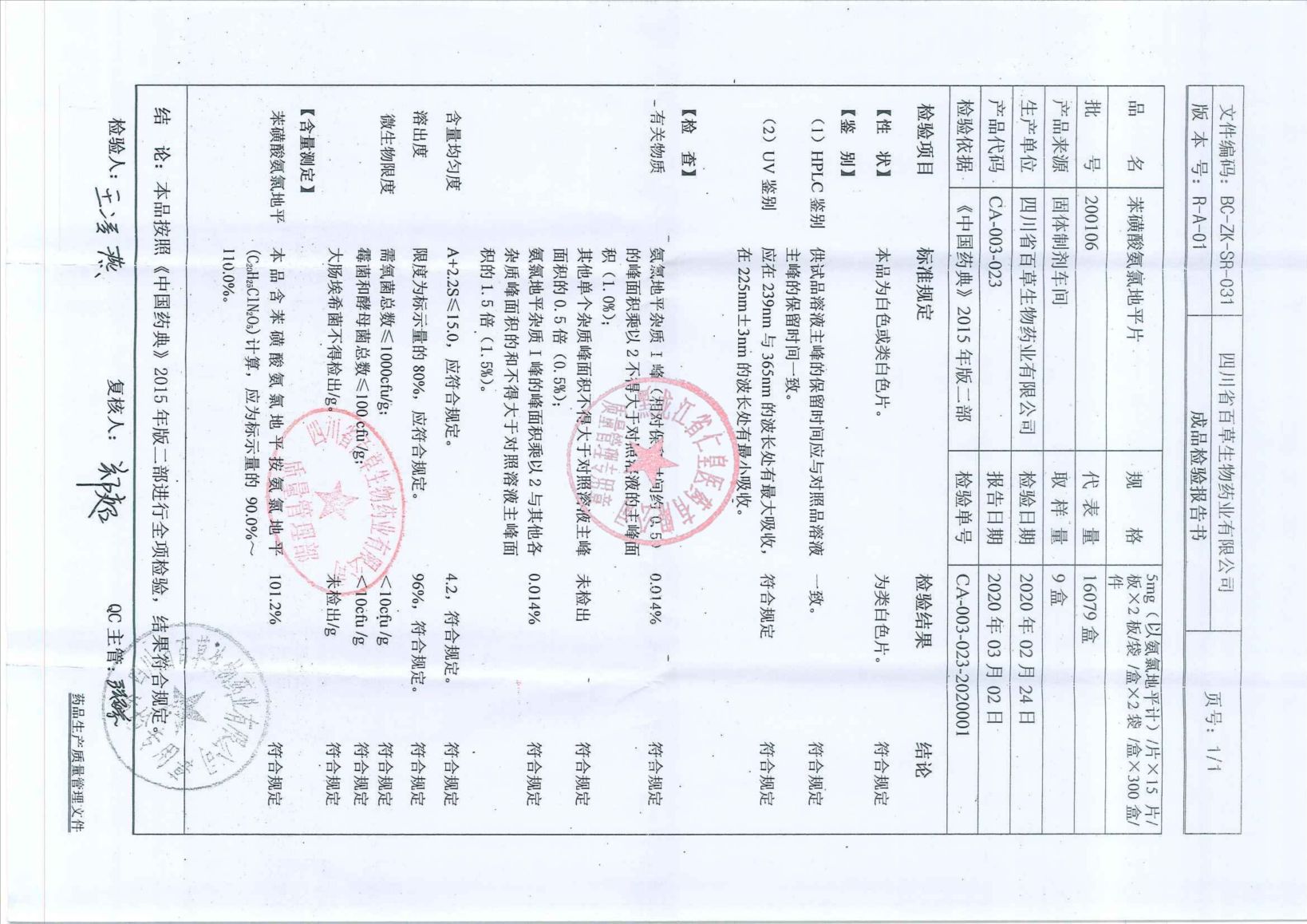 _苯磺酸氨氯地平片1