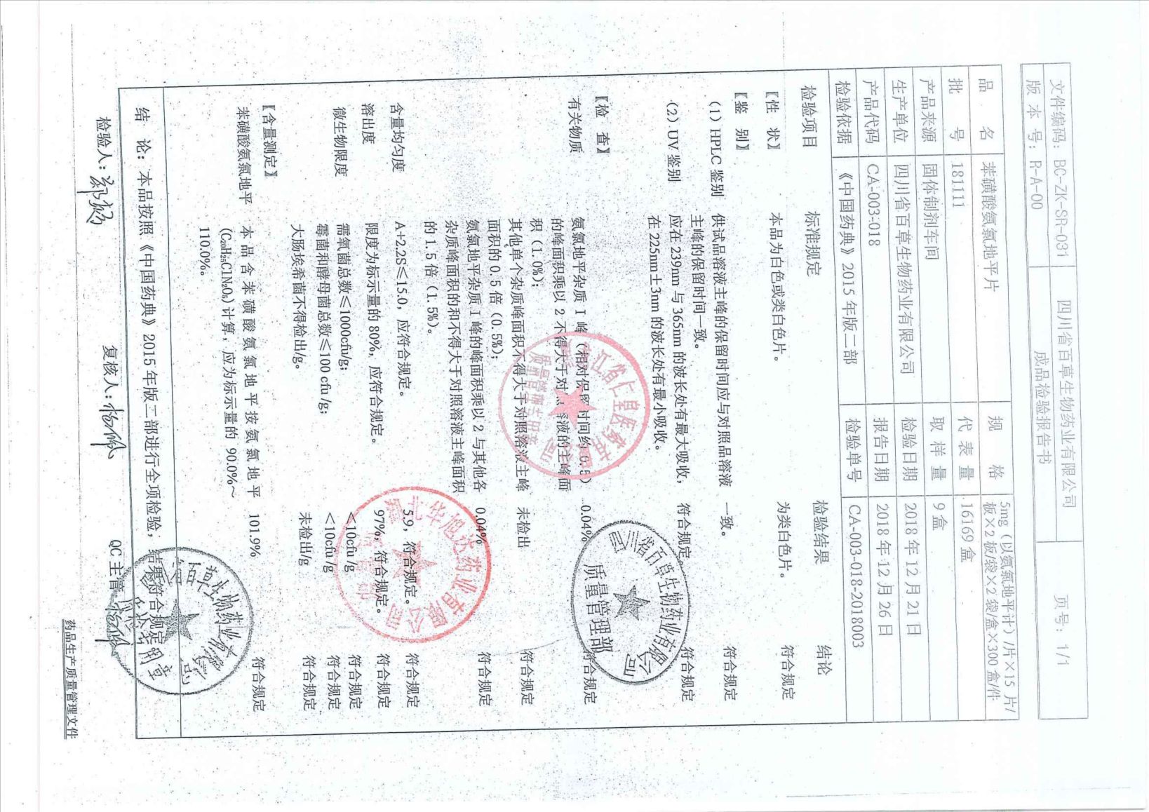 _苯磺酸氨氯地平片1