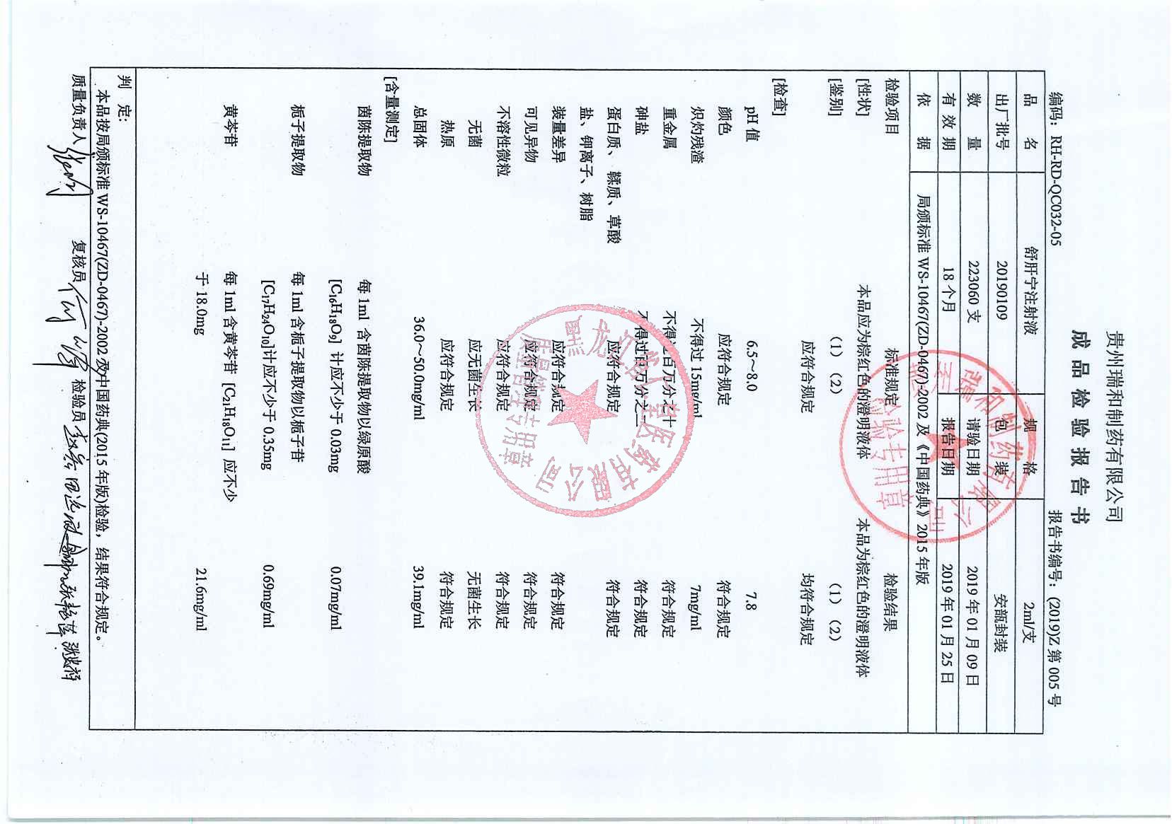 _舒肝宁注射液201
