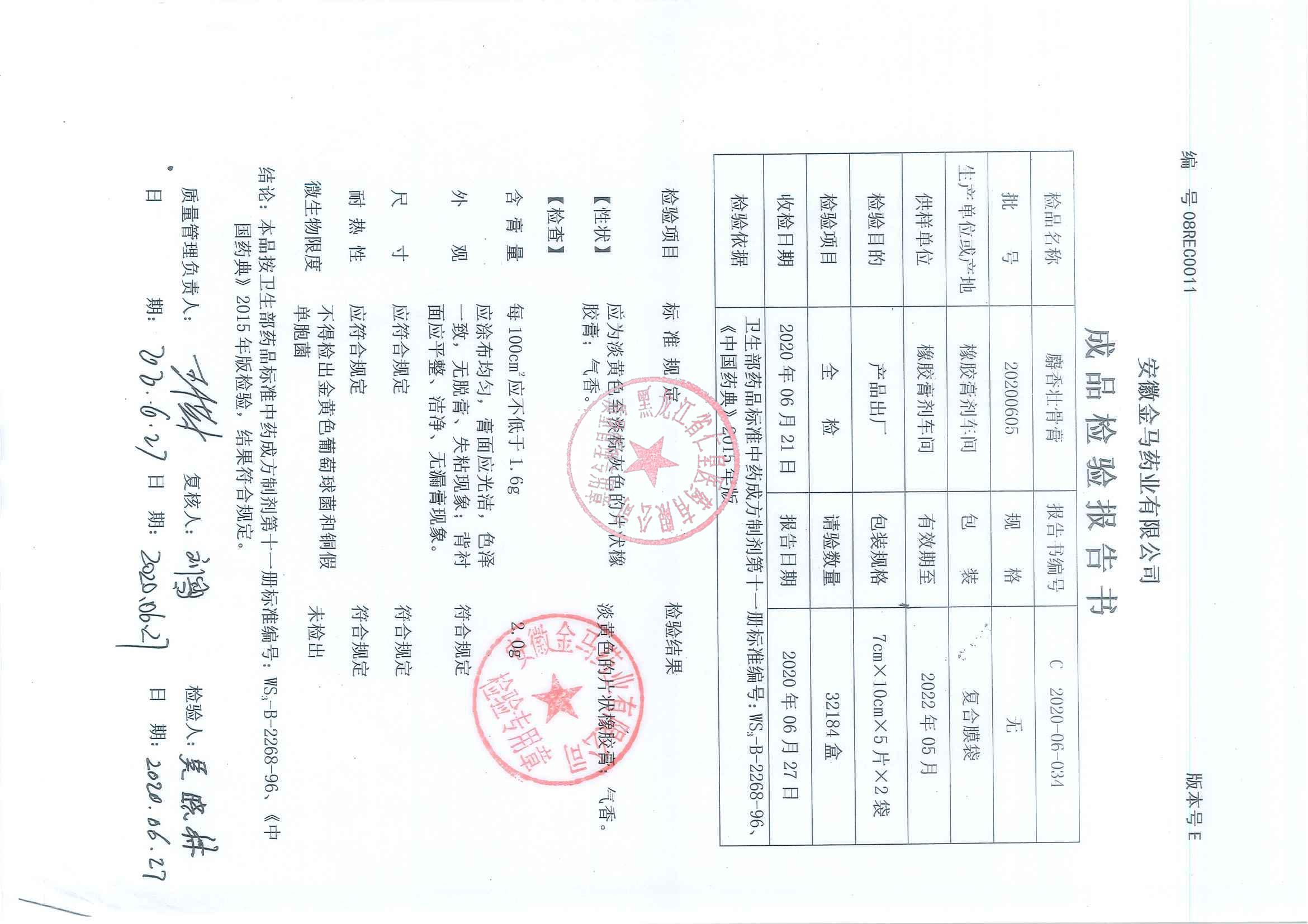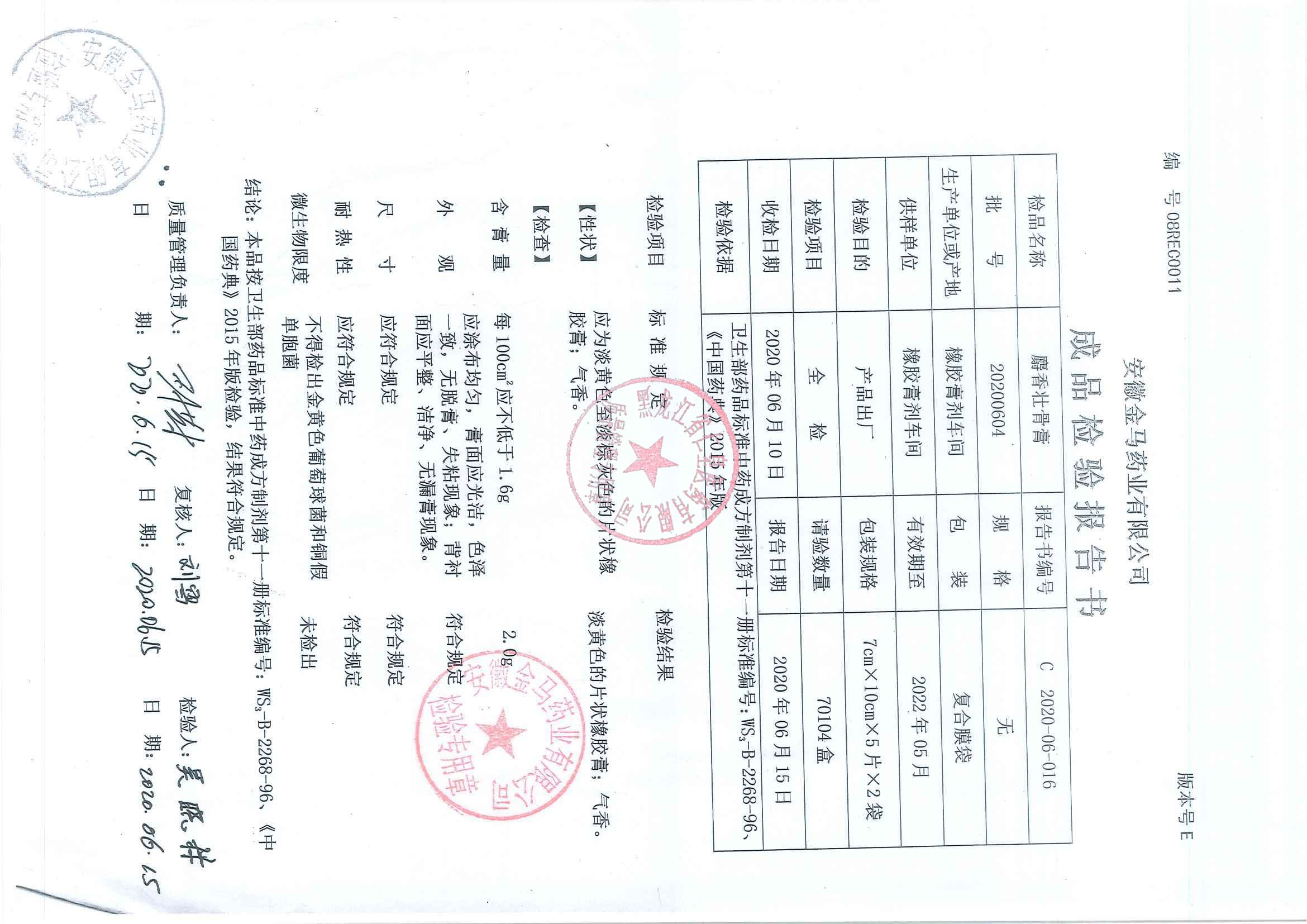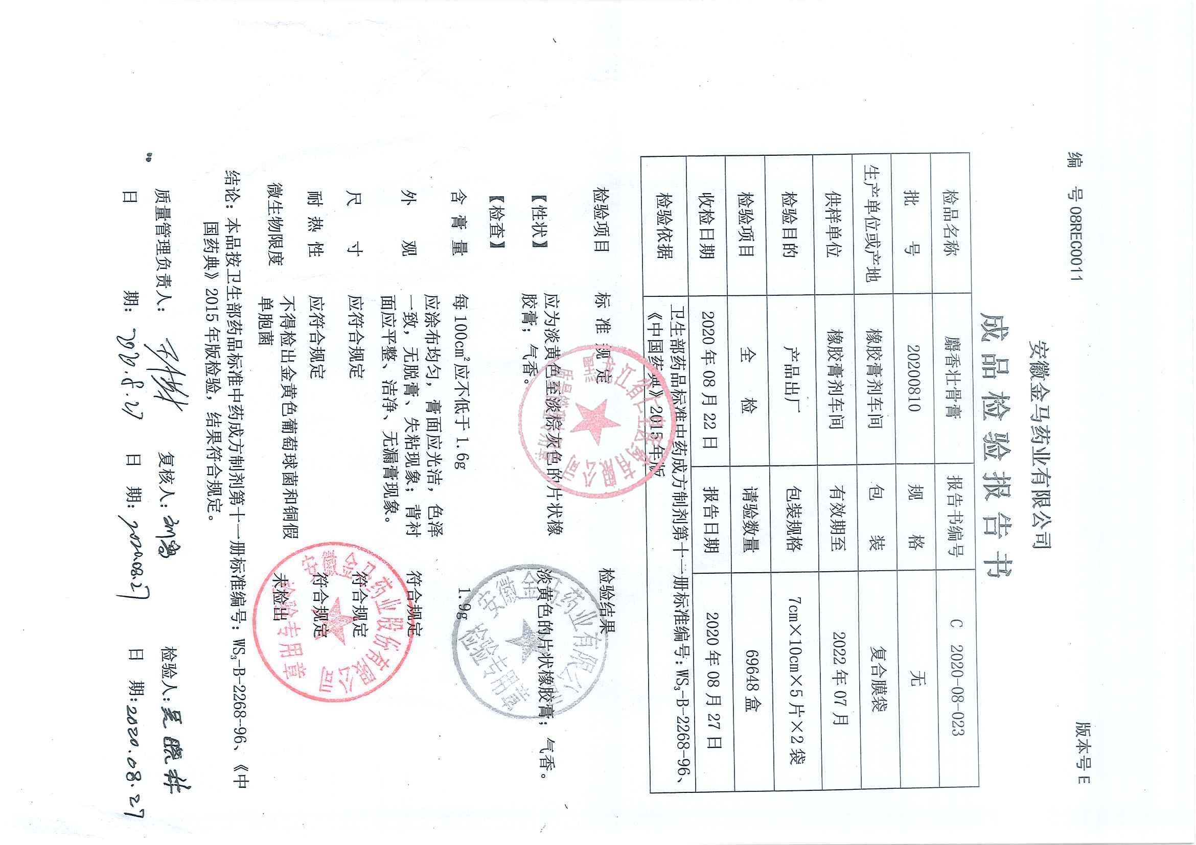 _麝香壮骨膏2020
