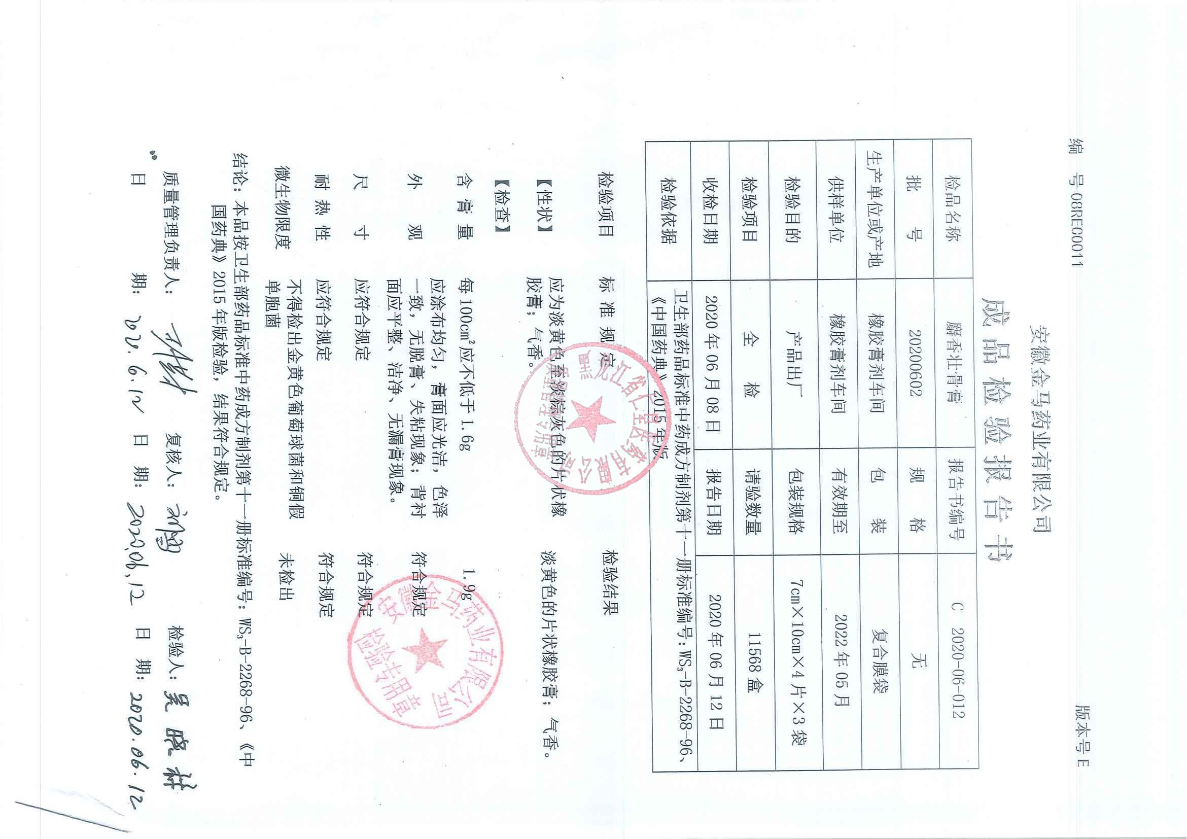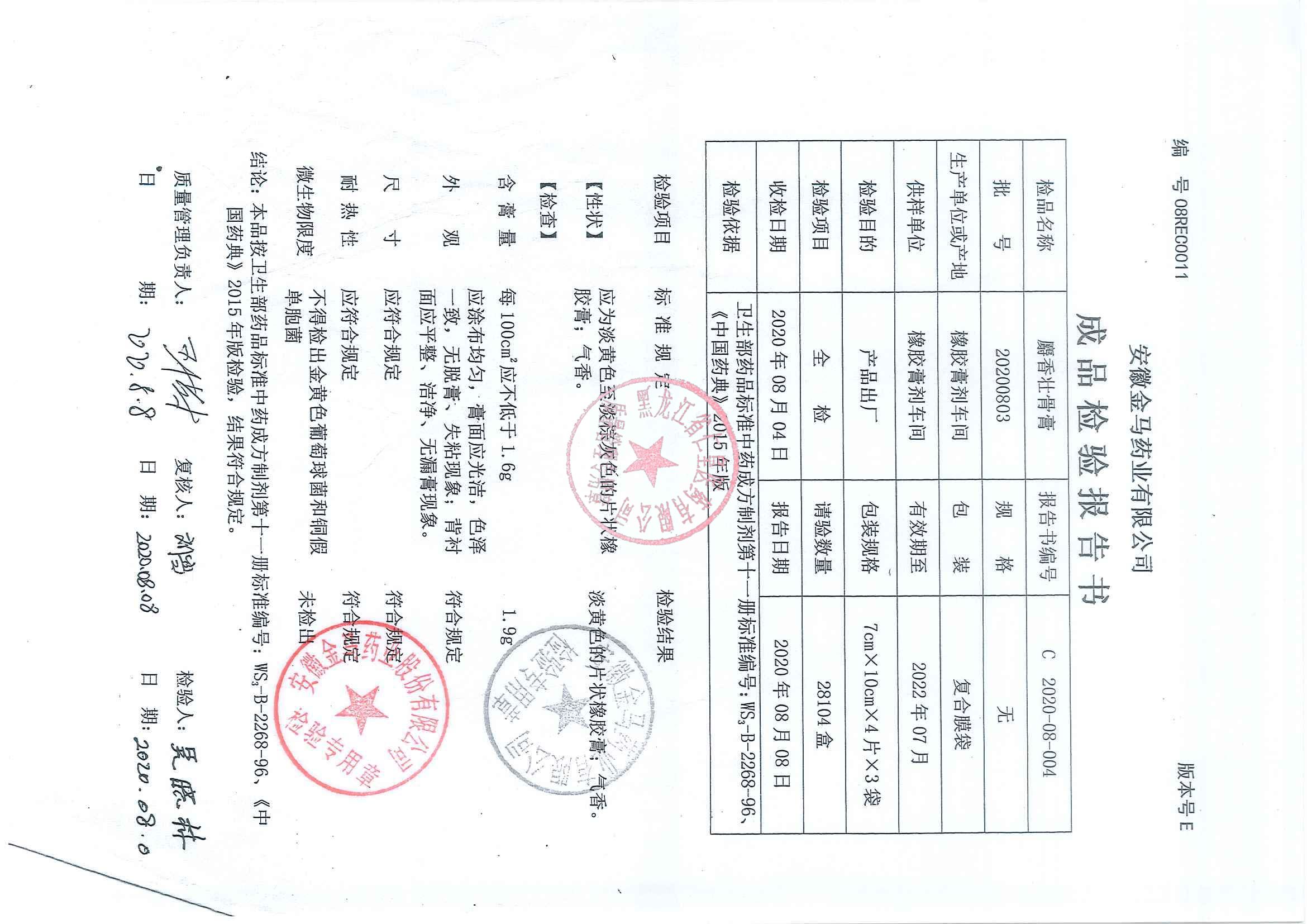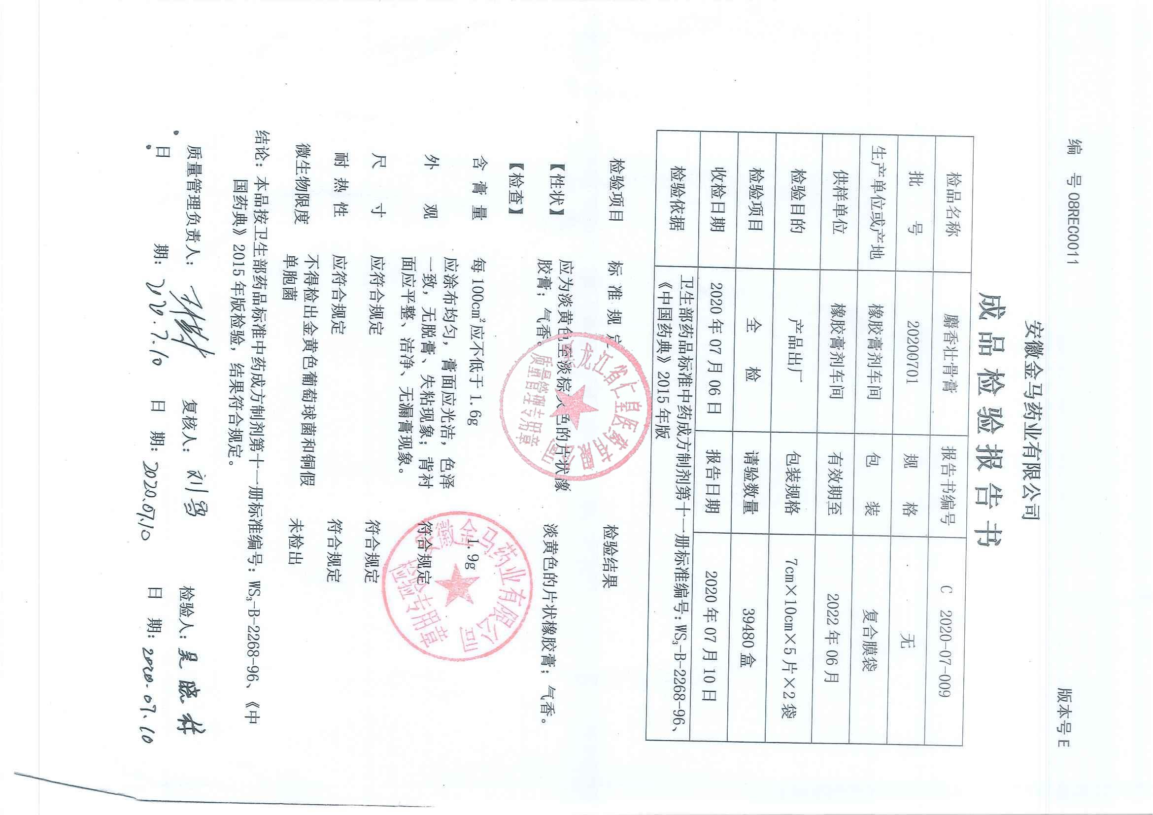 _麝香壮骨膏2020