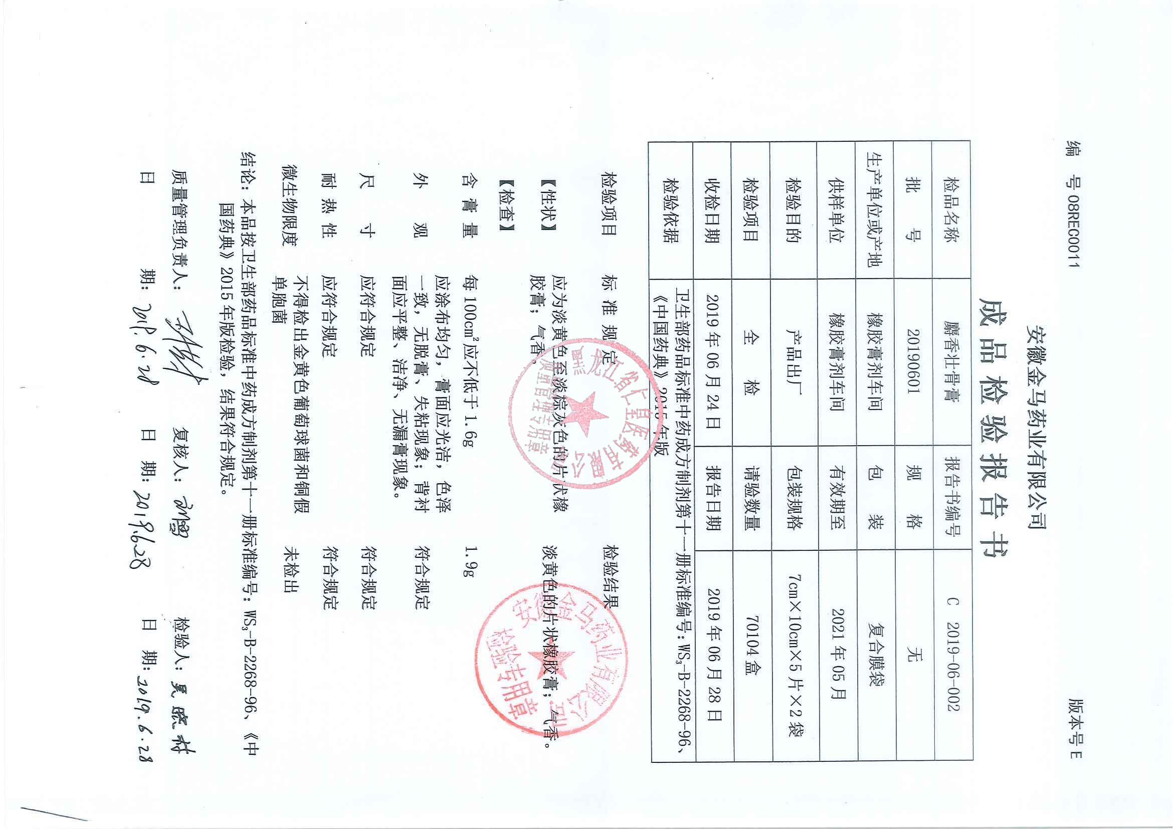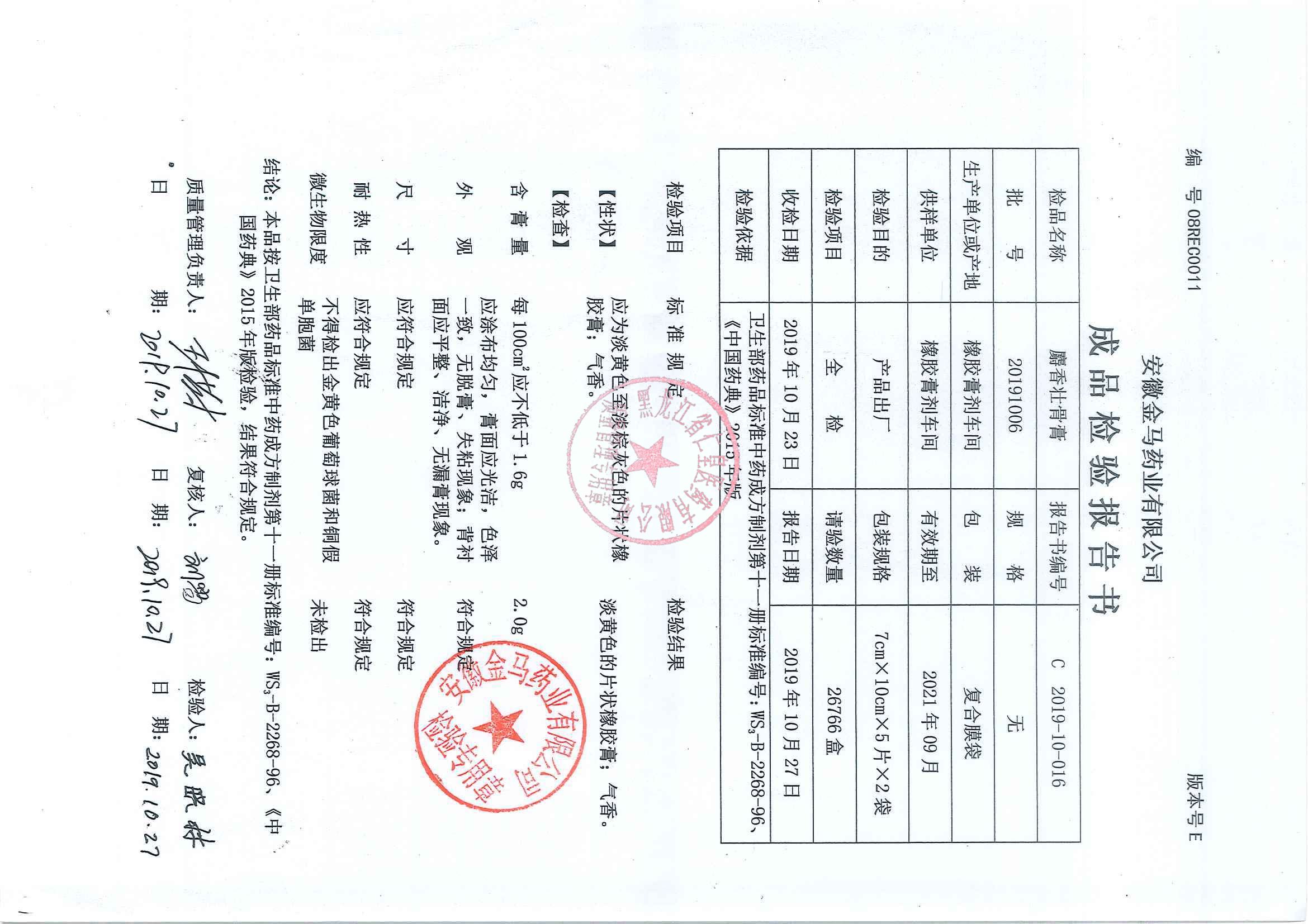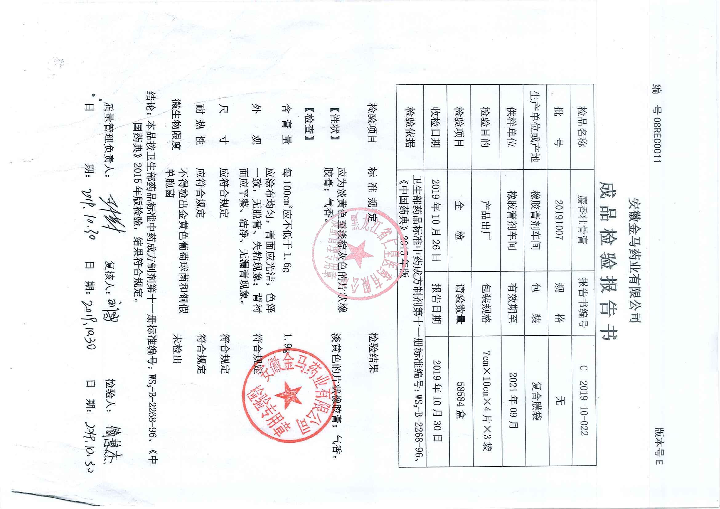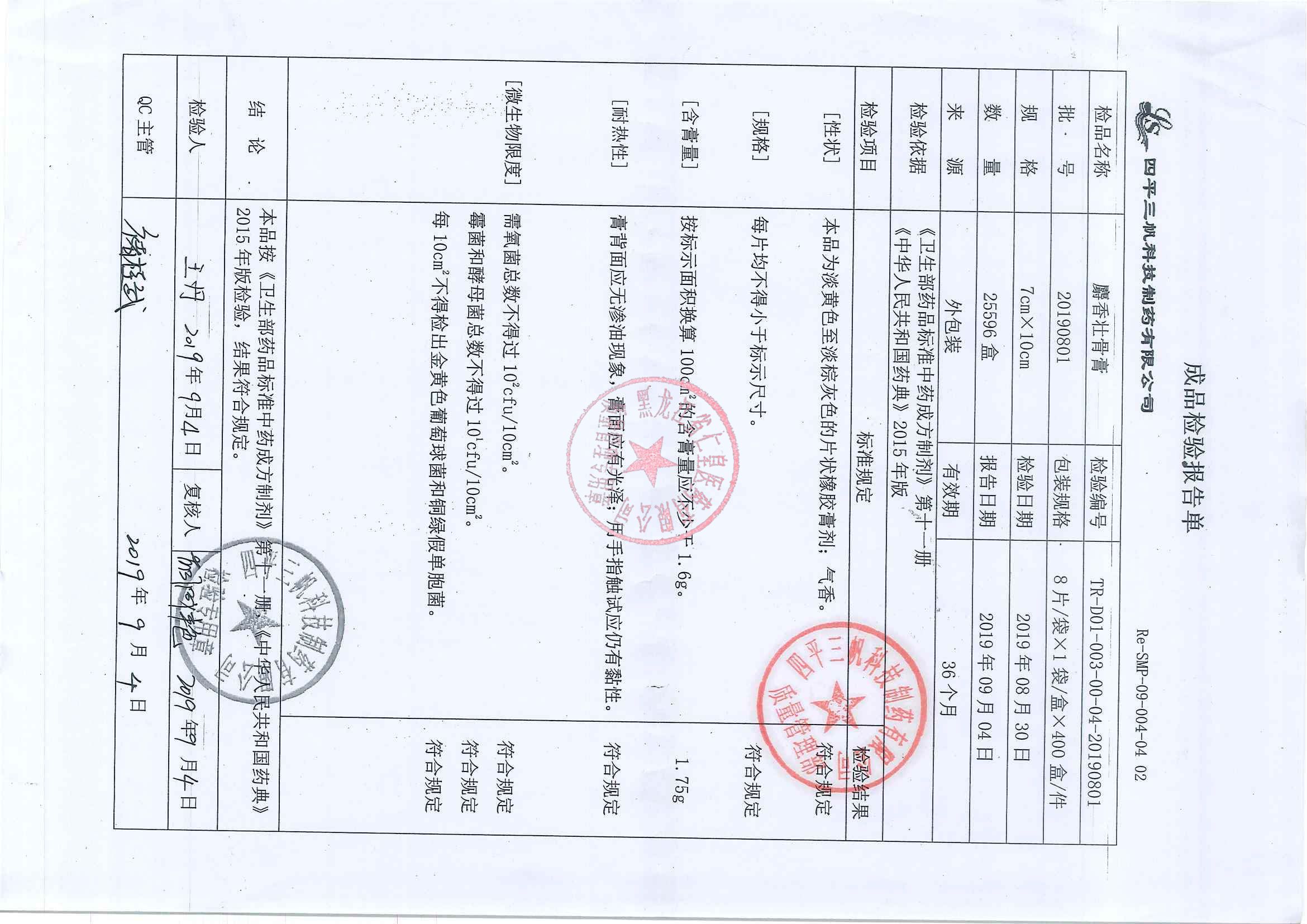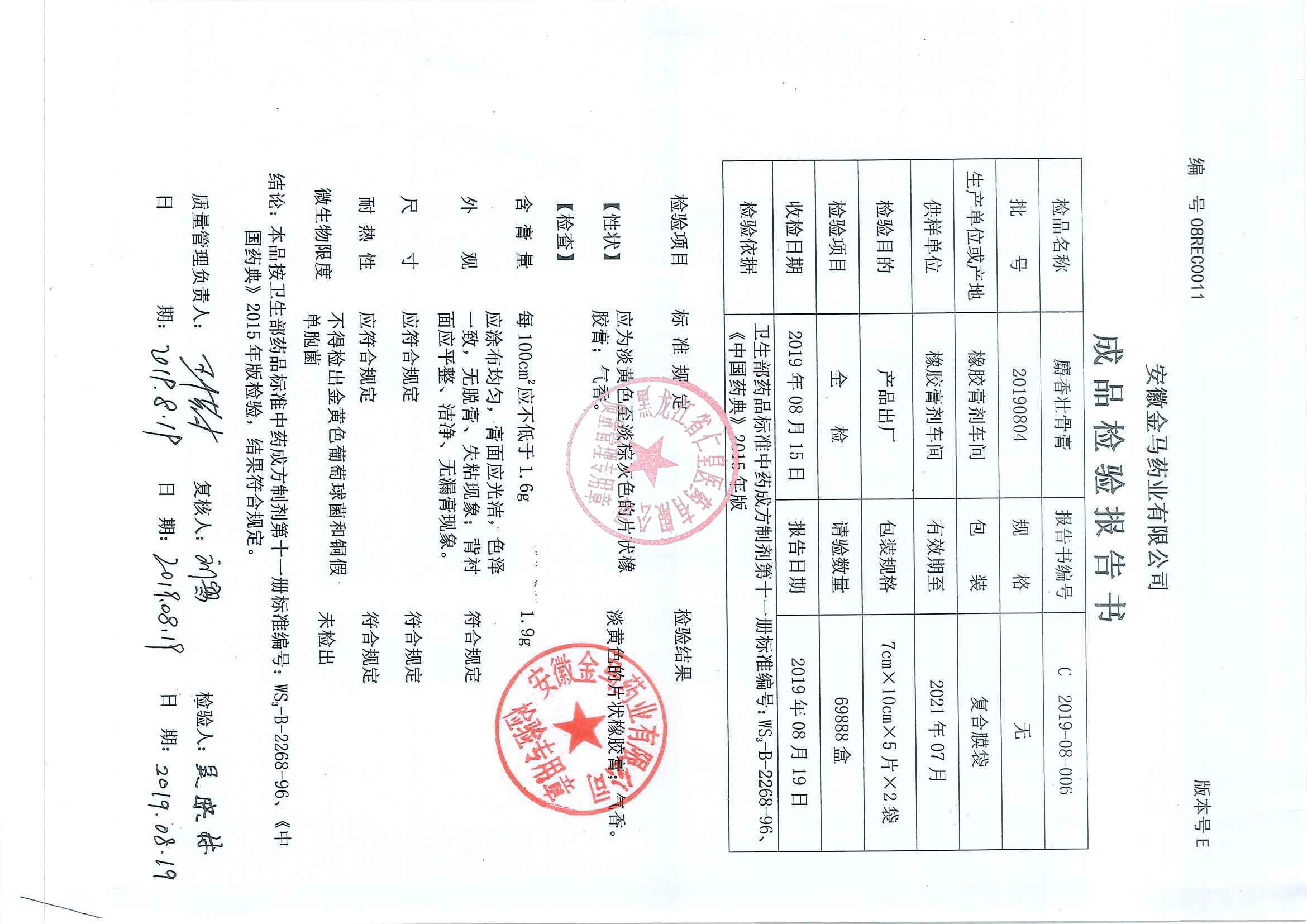 _麝香壮骨膏2019