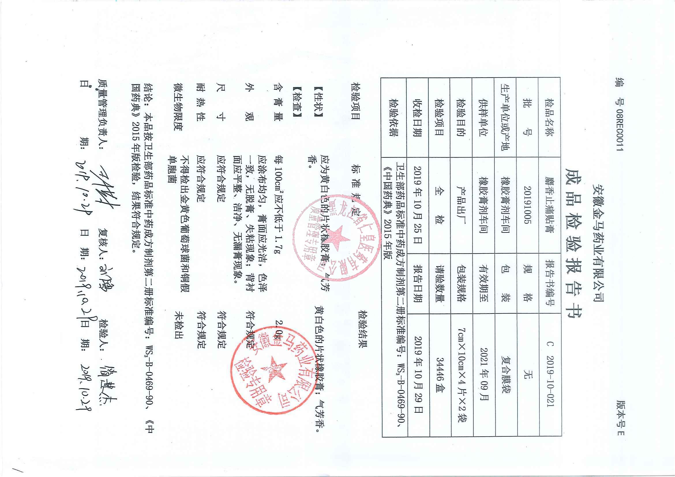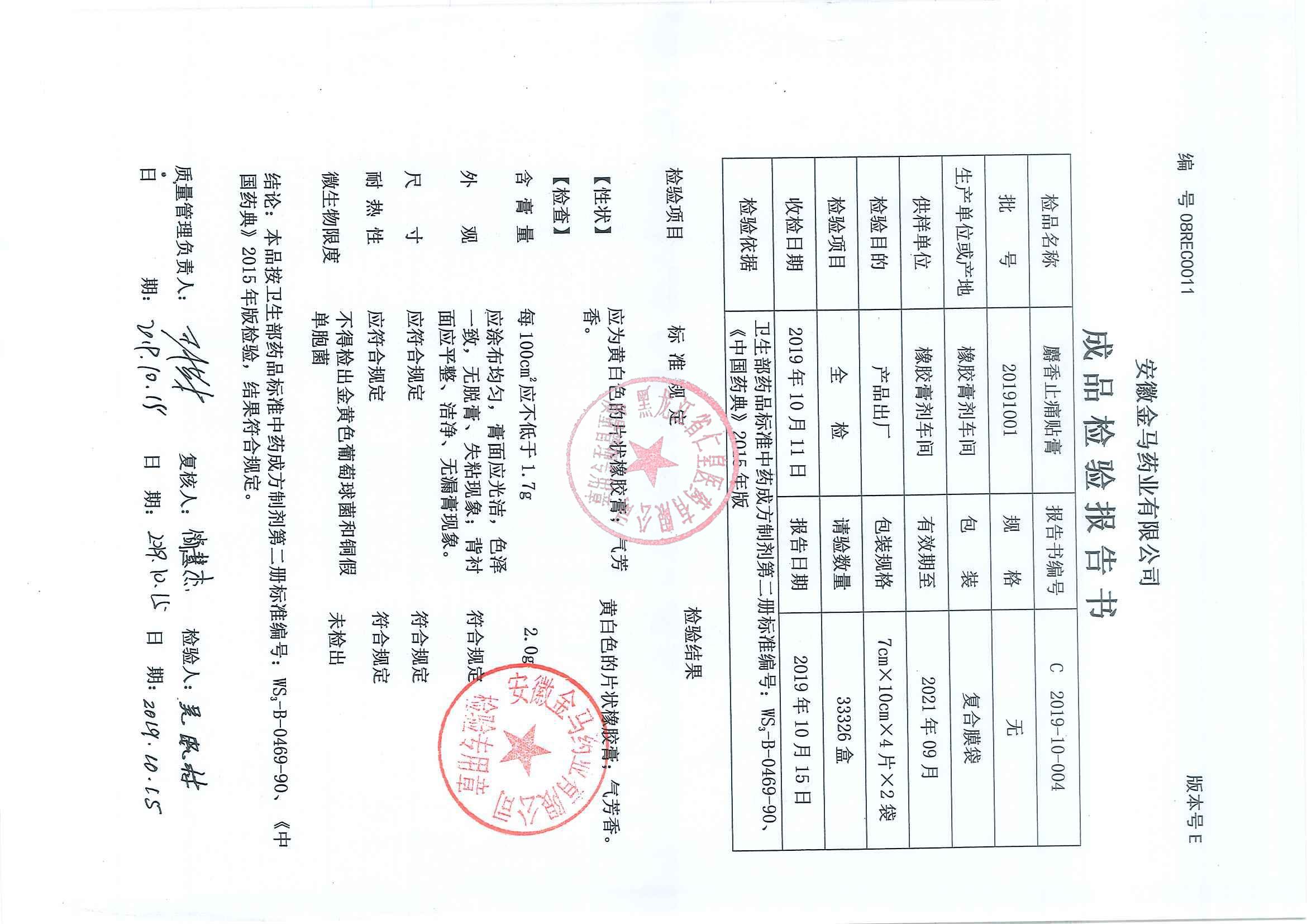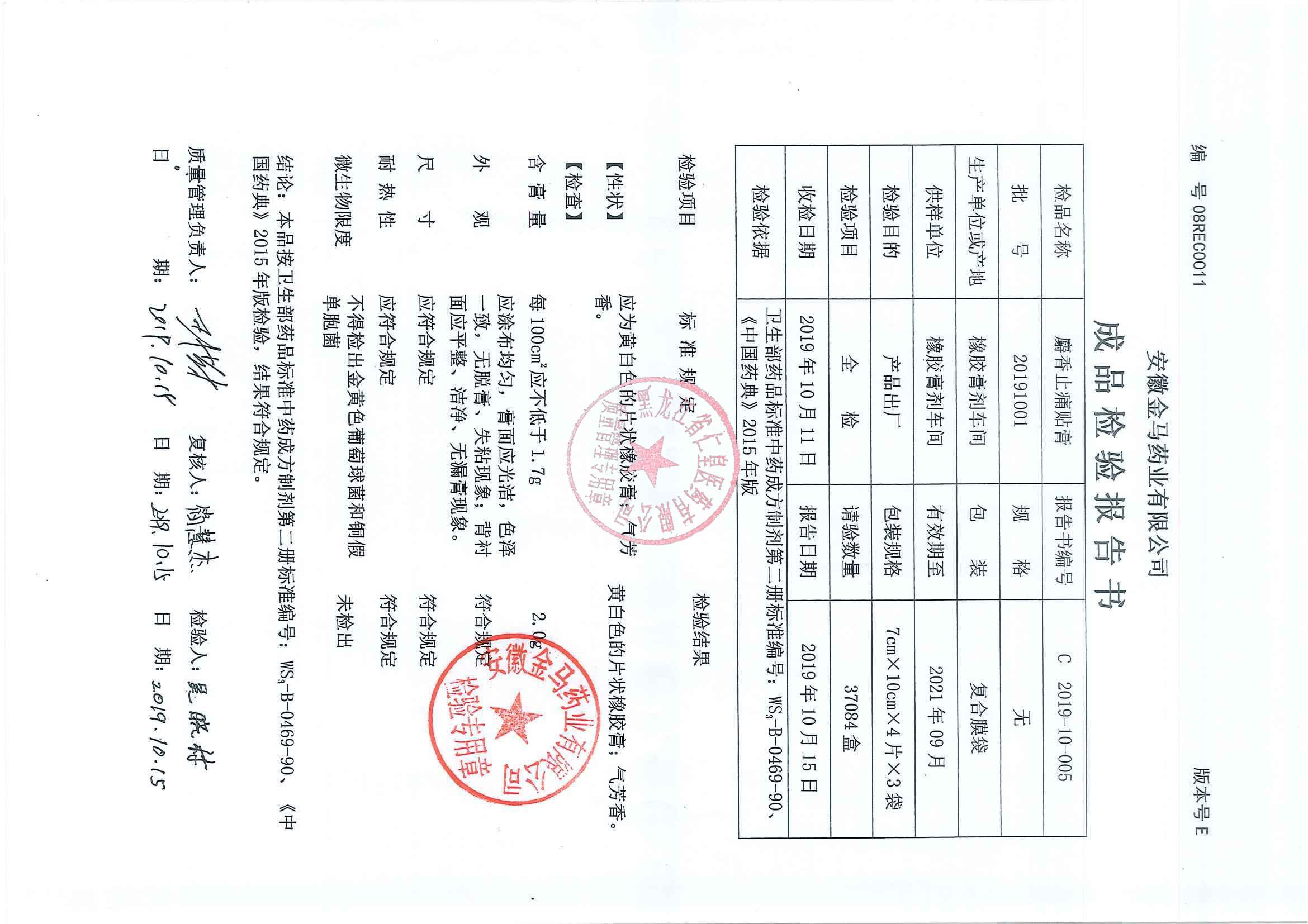 _麝香止痛贴膏201