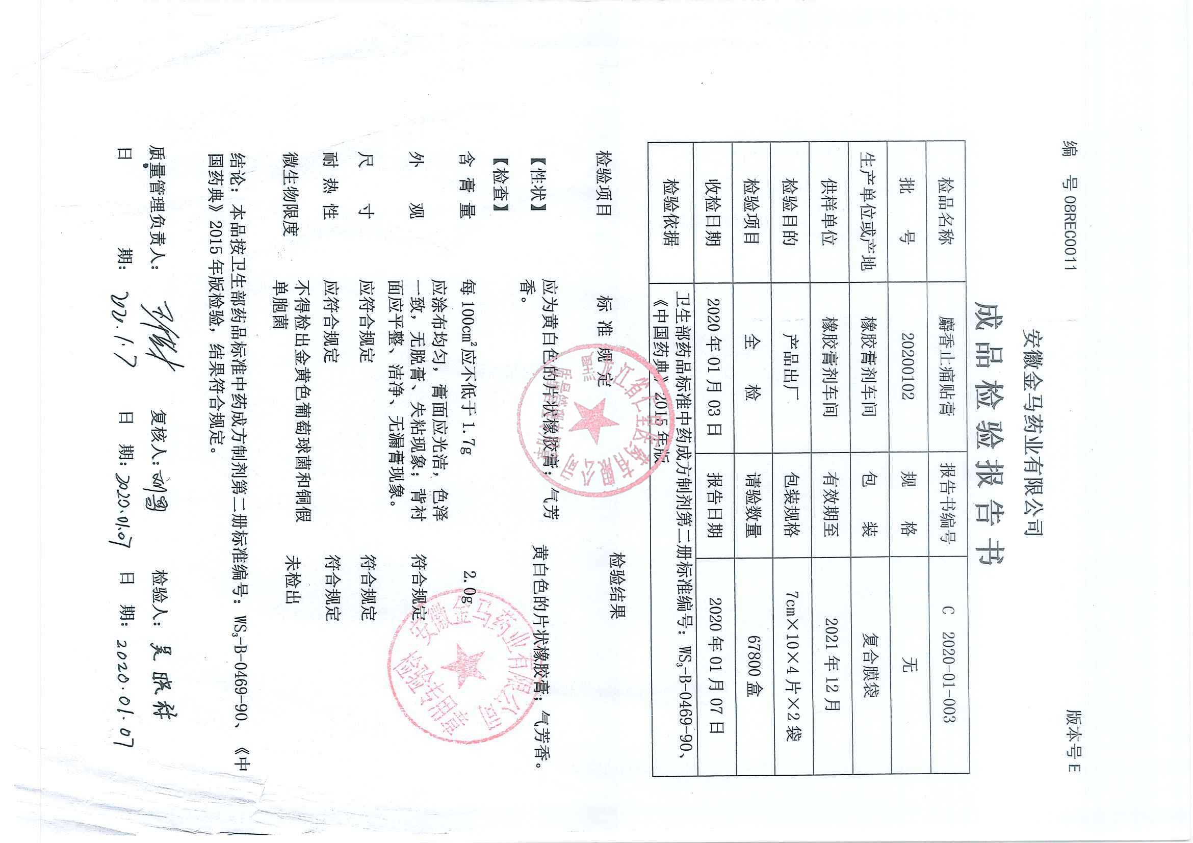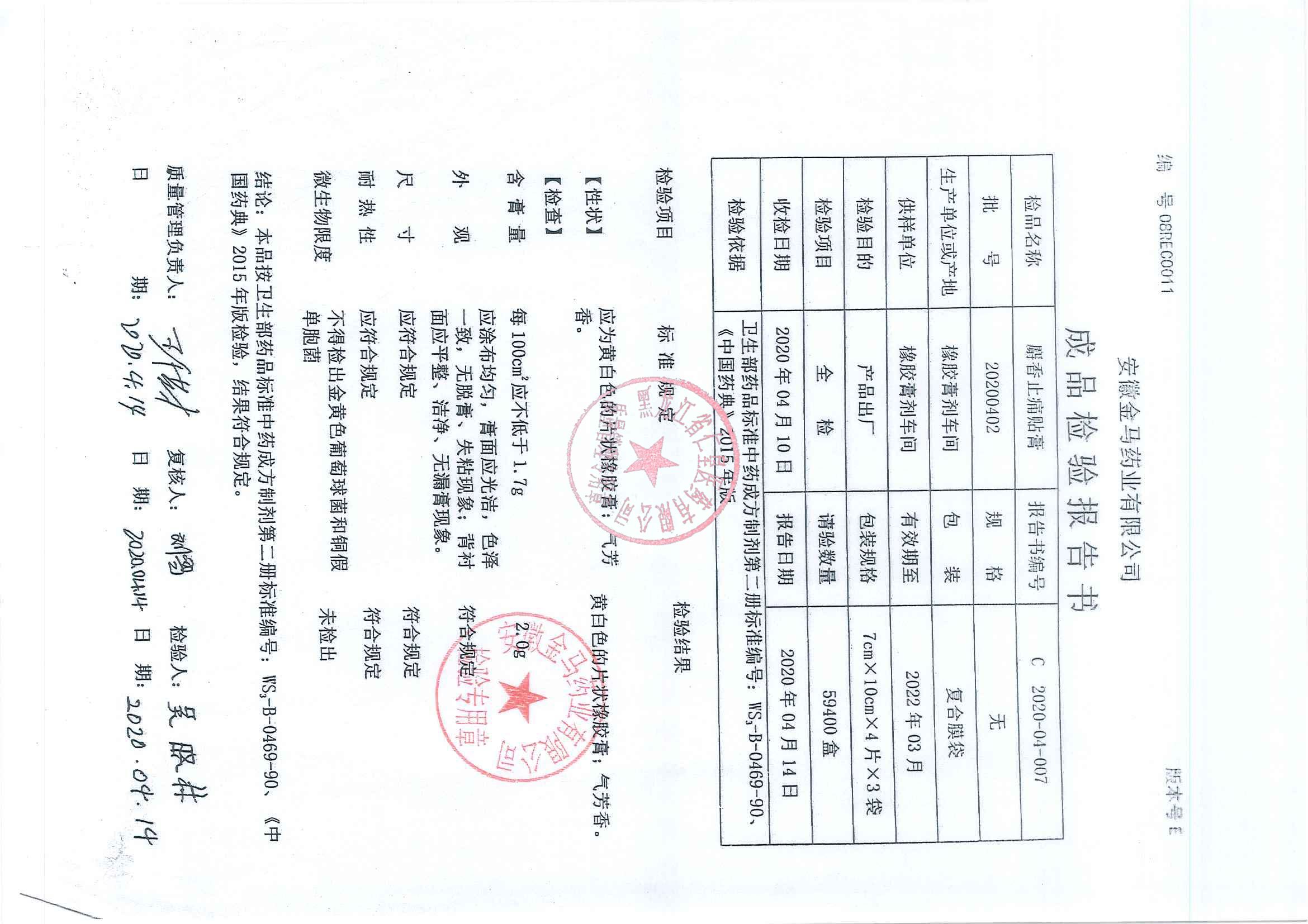 _麝香止痛贴膏202