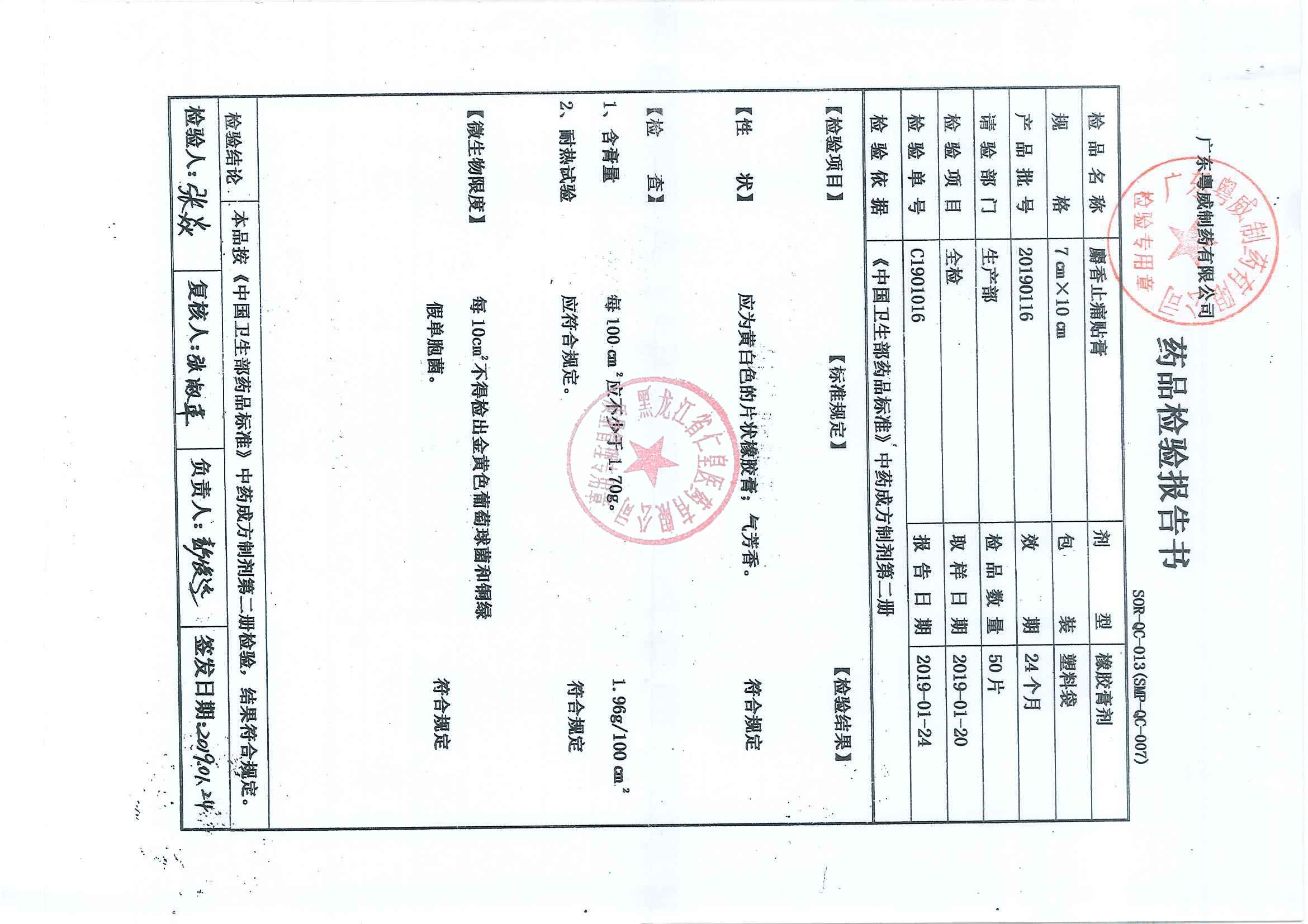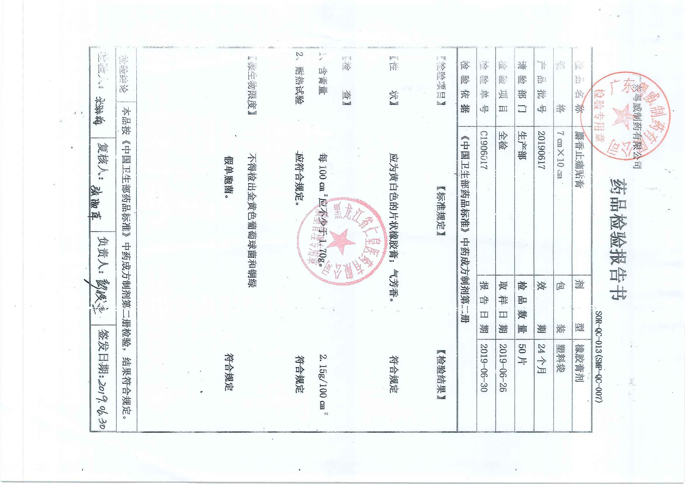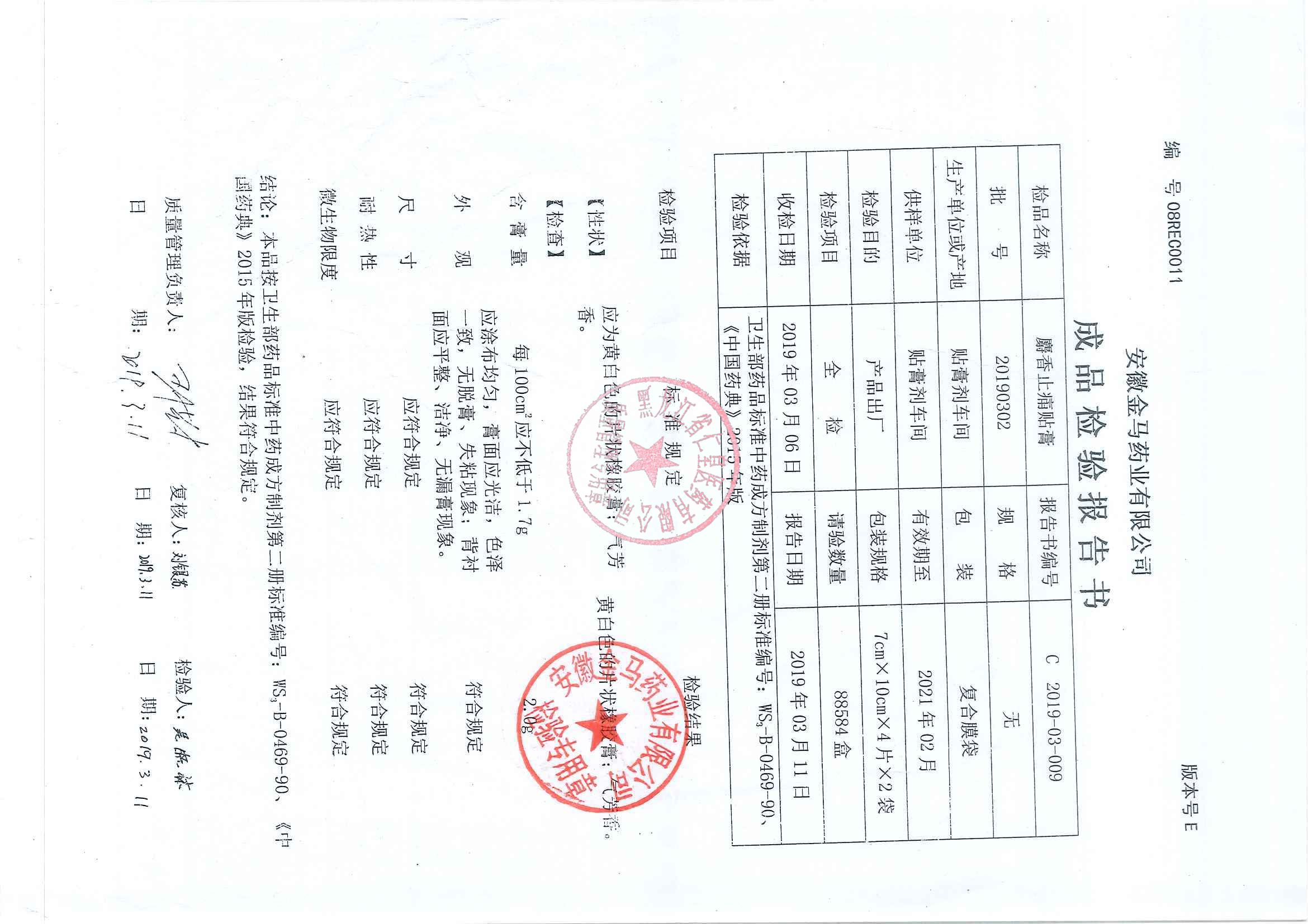 _麝香止痛贴膏201