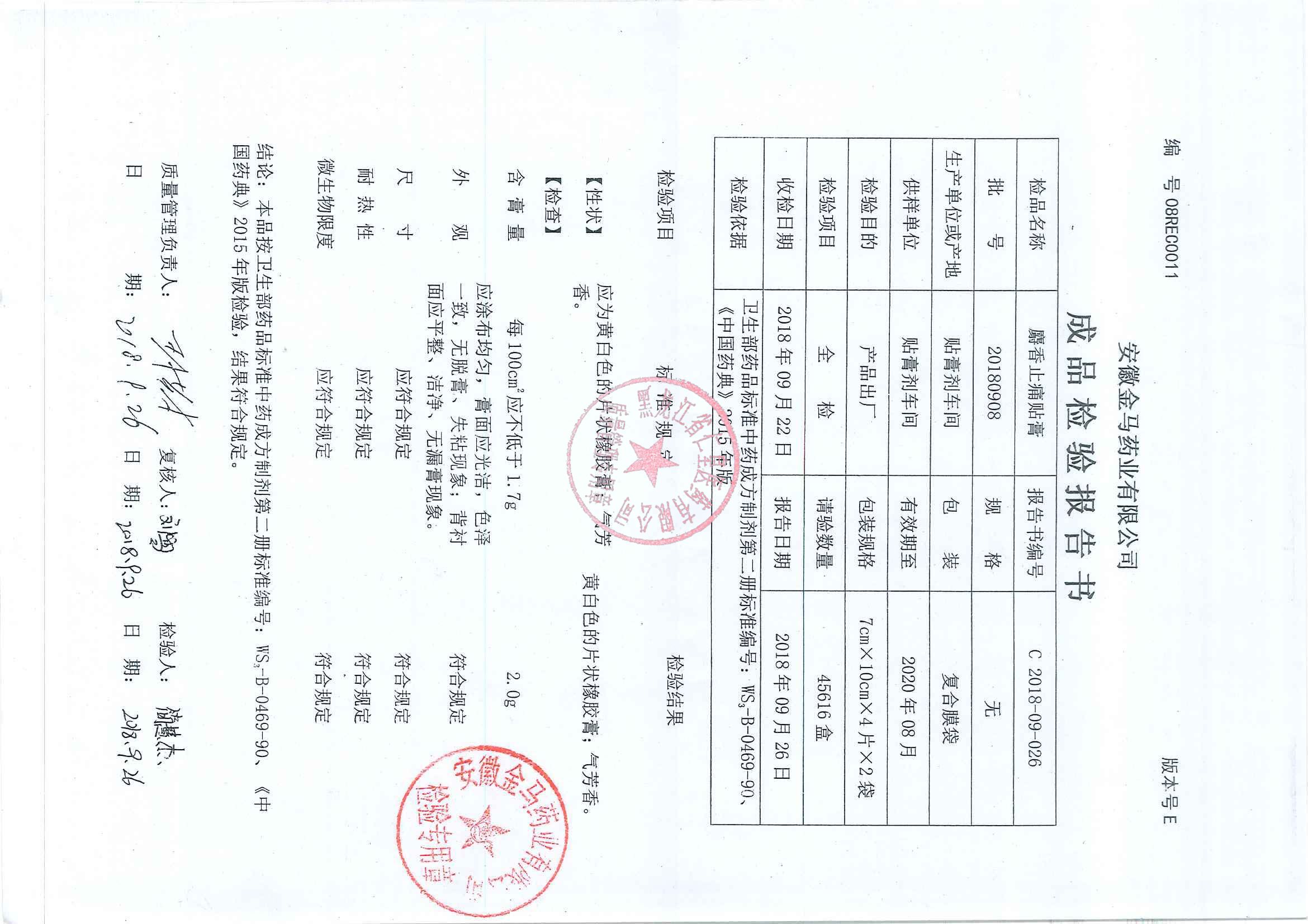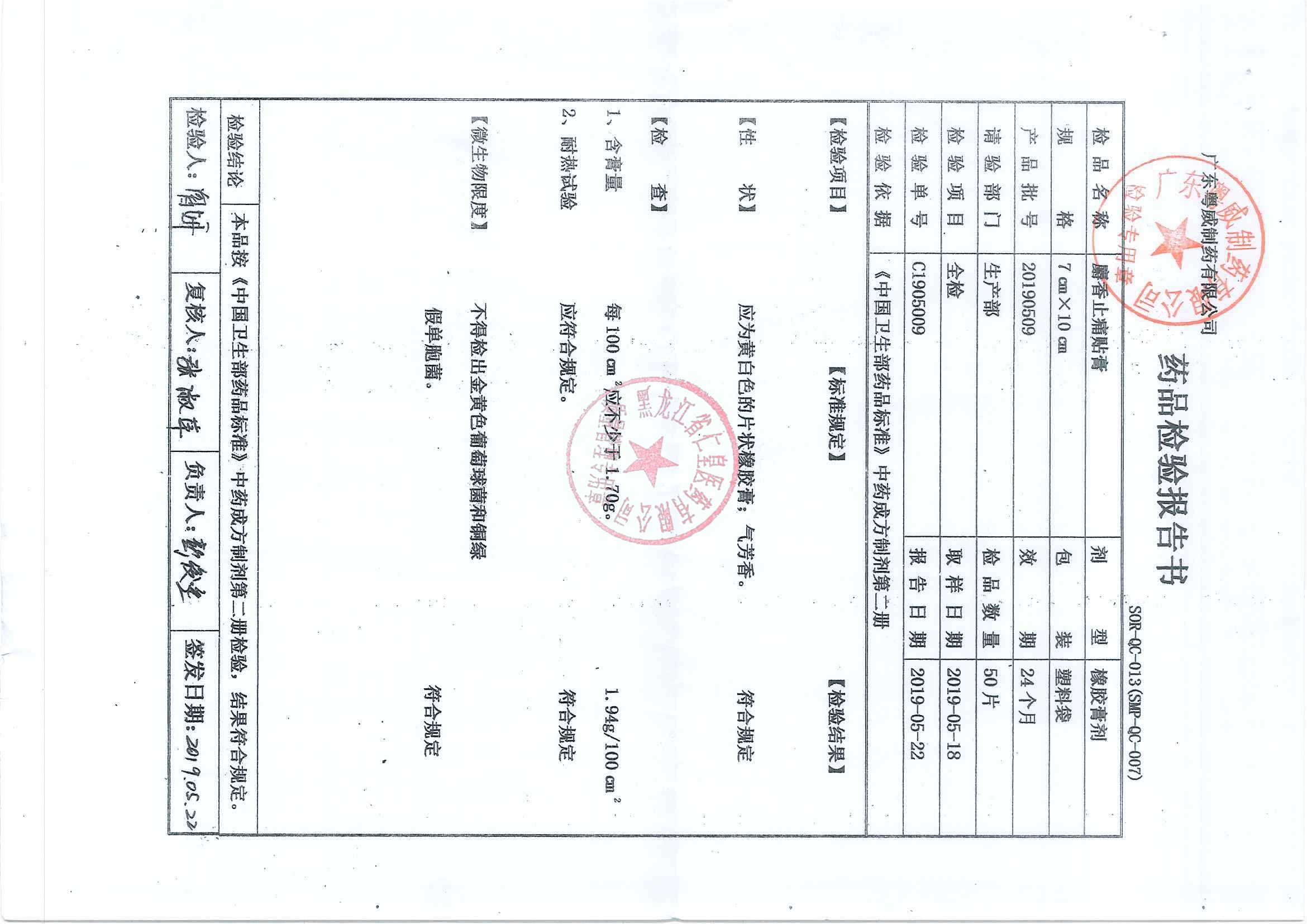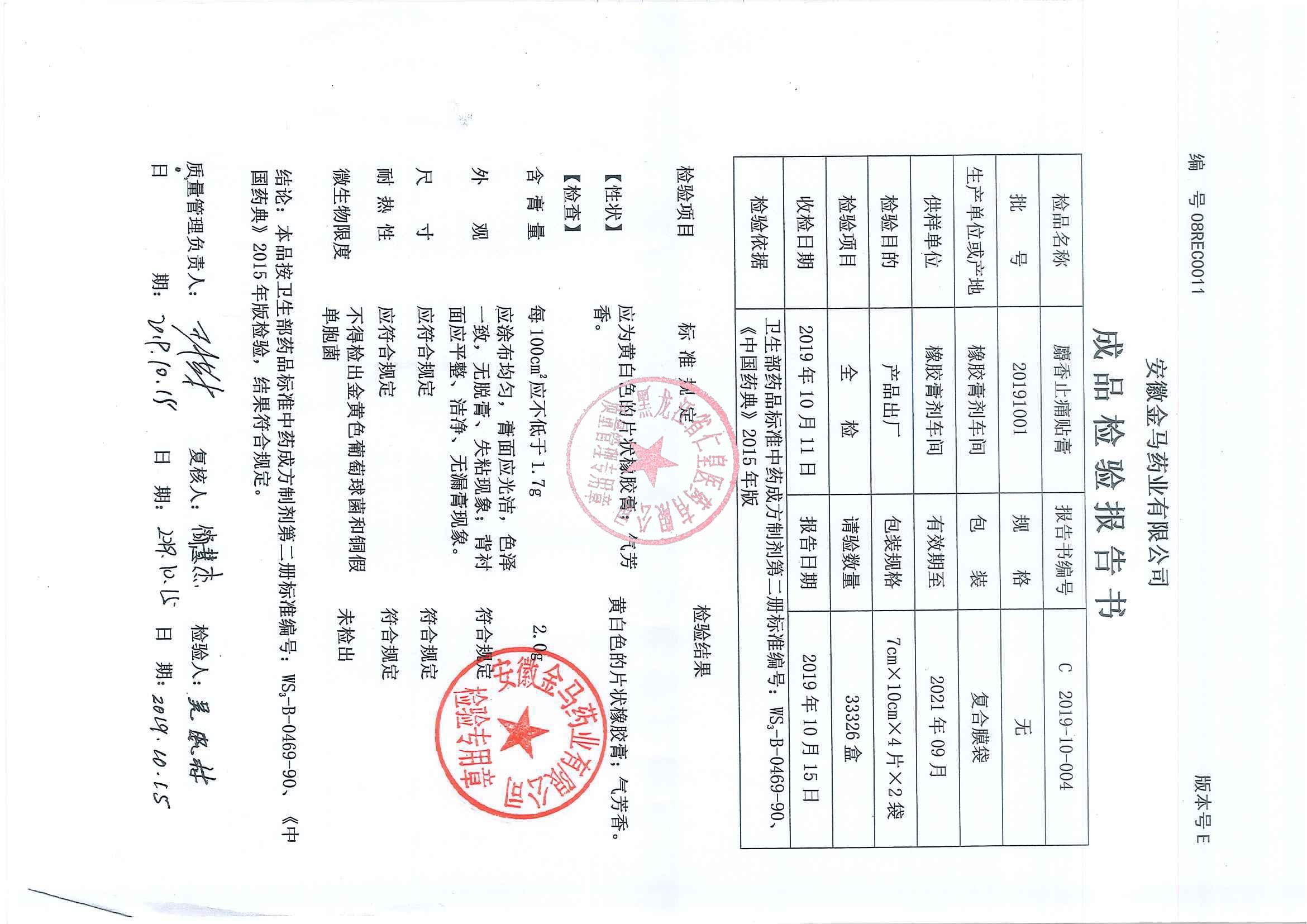 _麝香止痛贴膏201