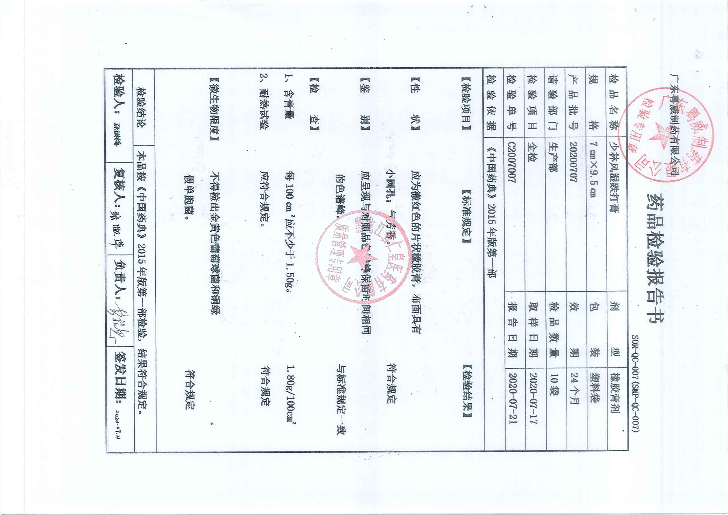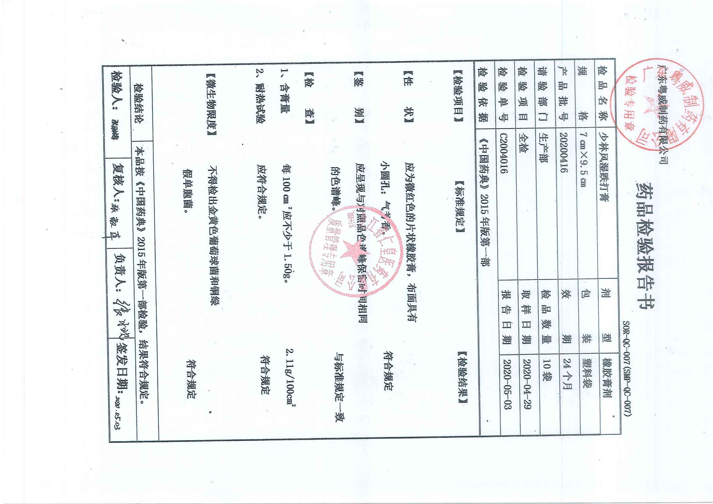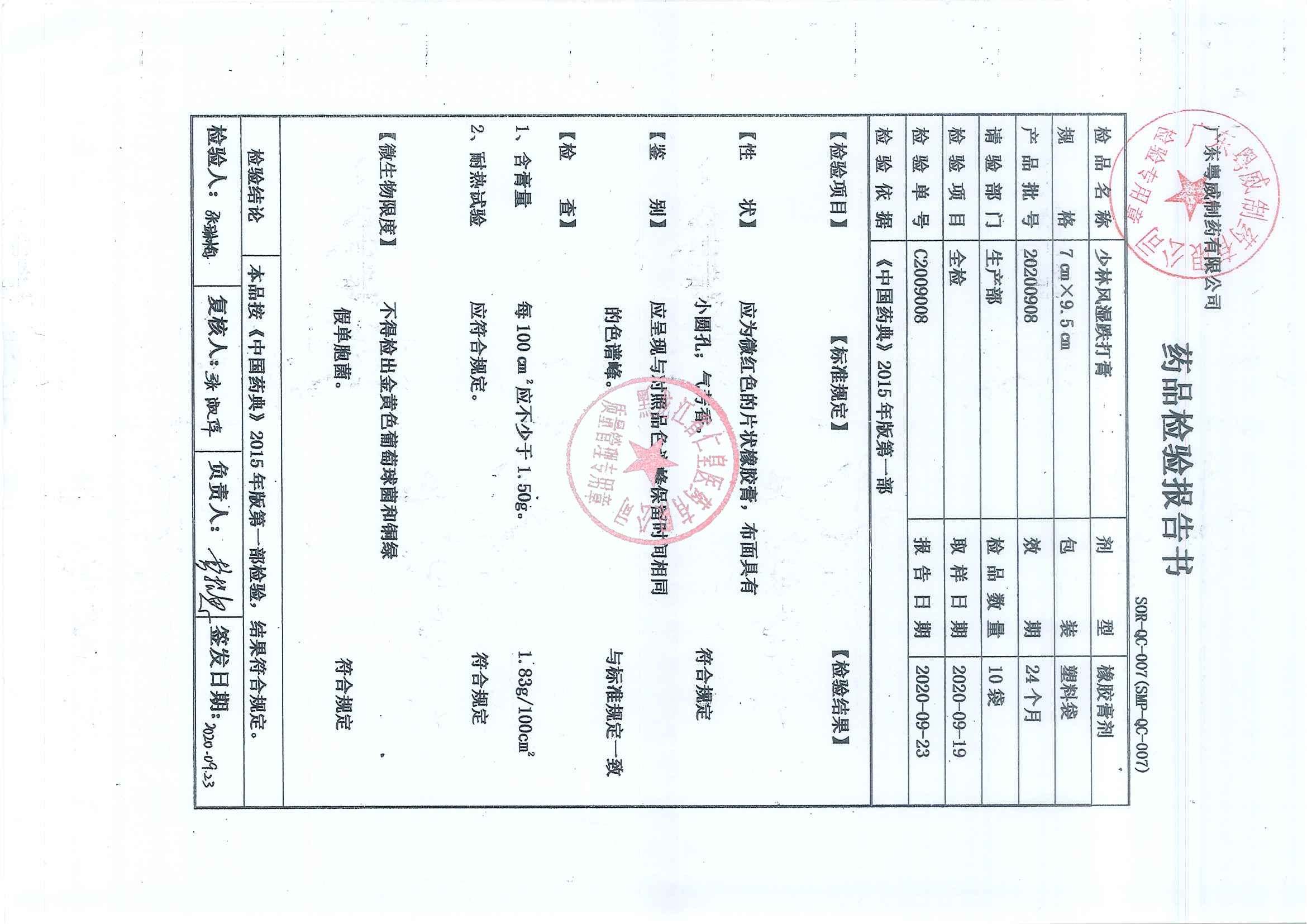 _少林风湿跌打膏20