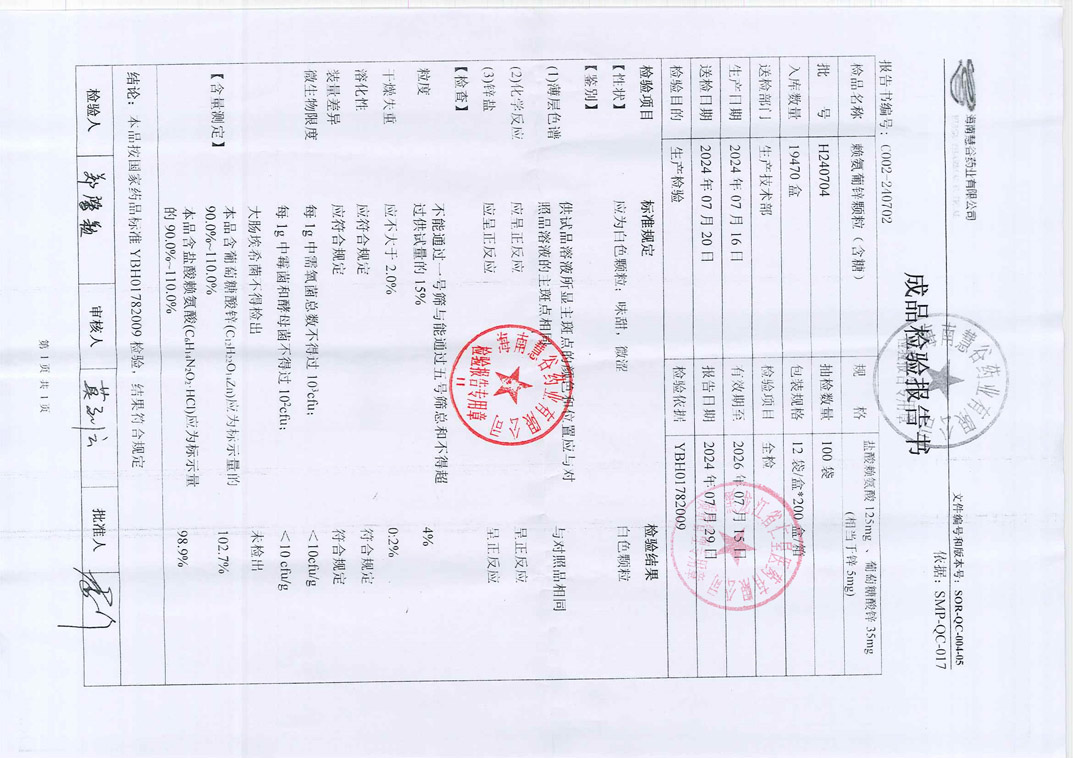 赖氨葡锌颗粒H240