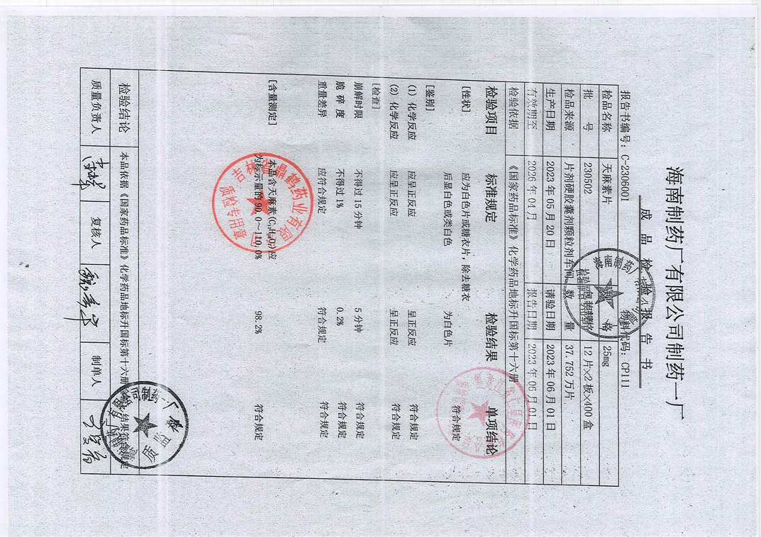 天麻素片230502