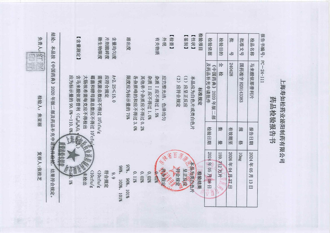 马来酸依那普利片24