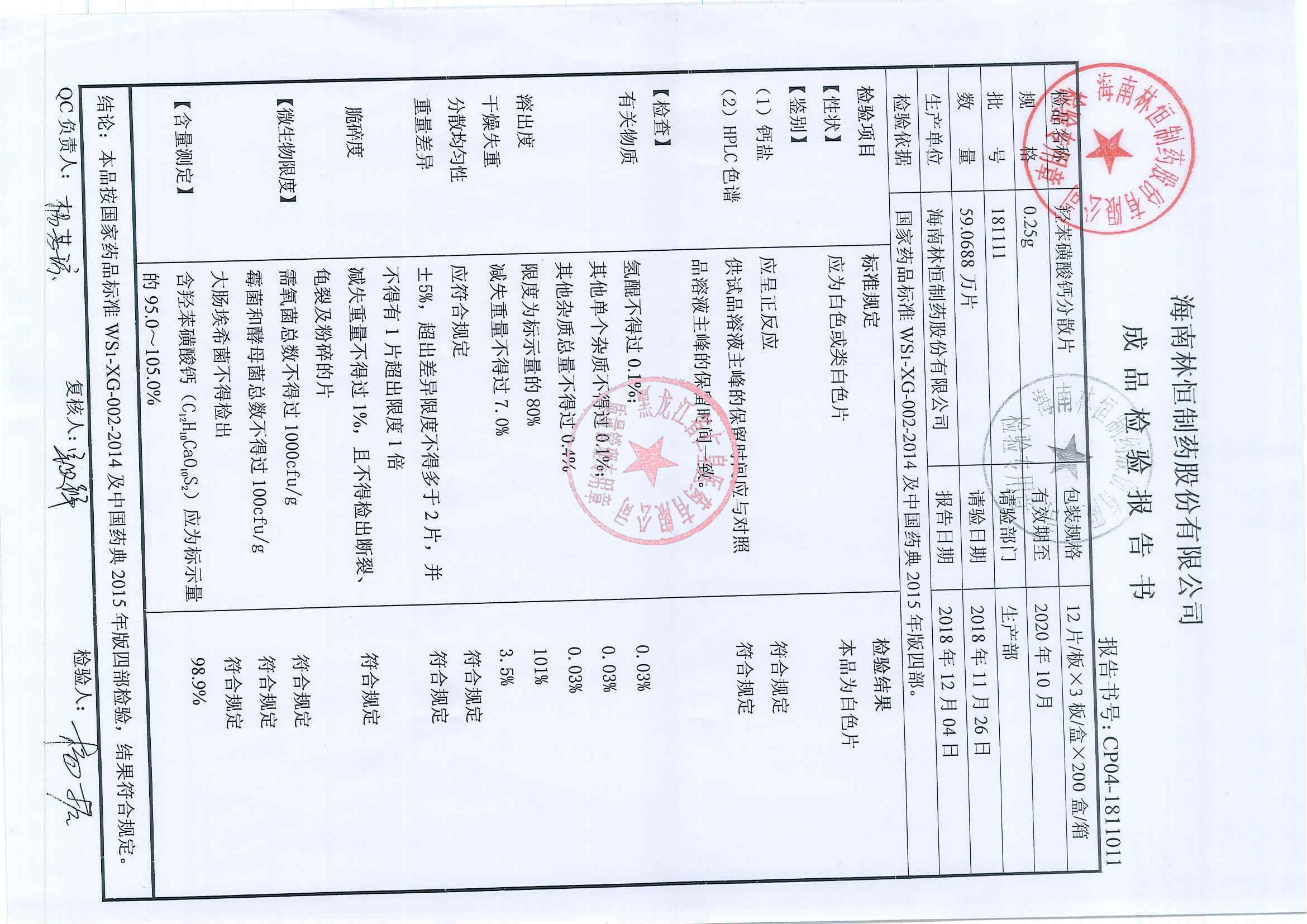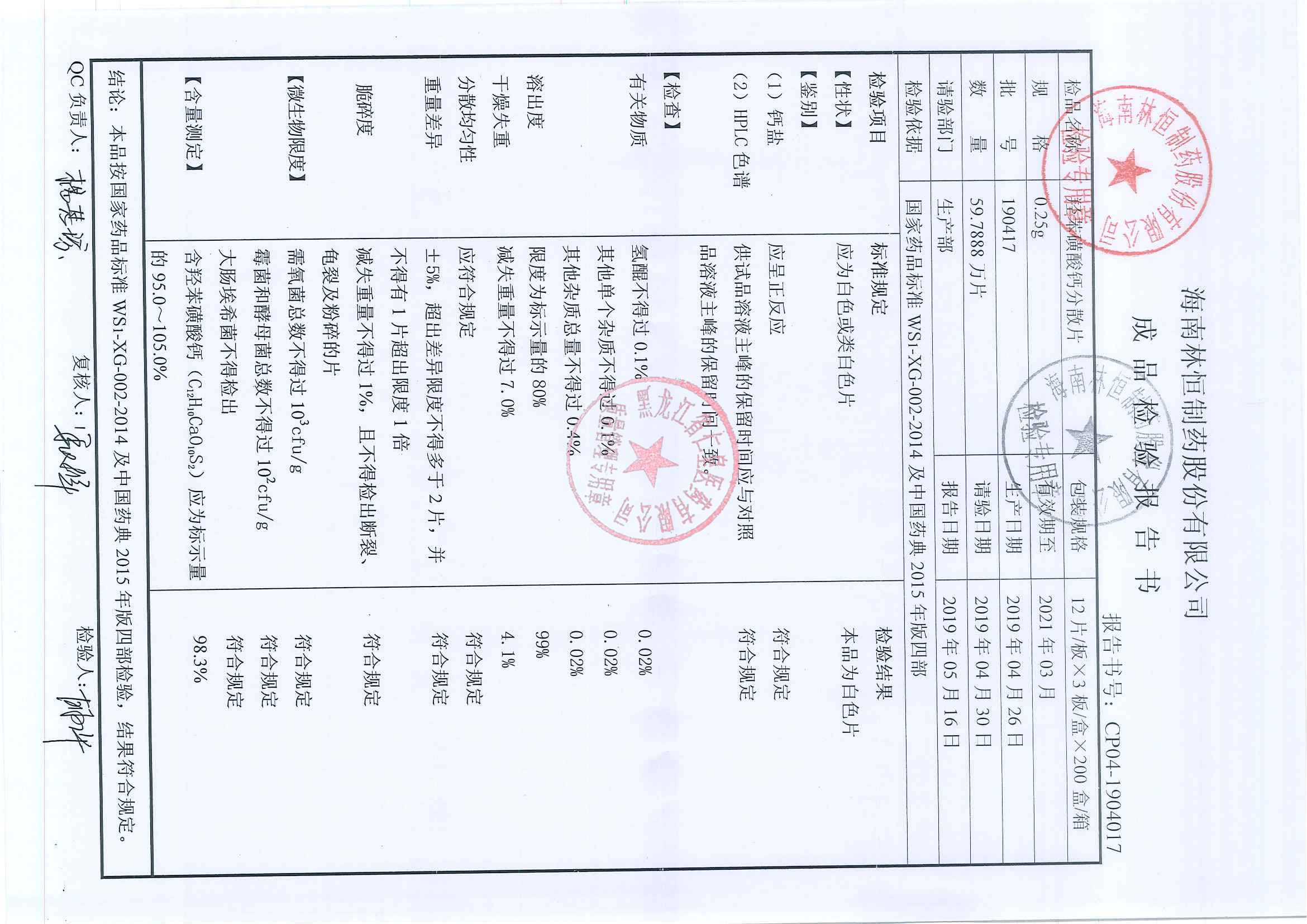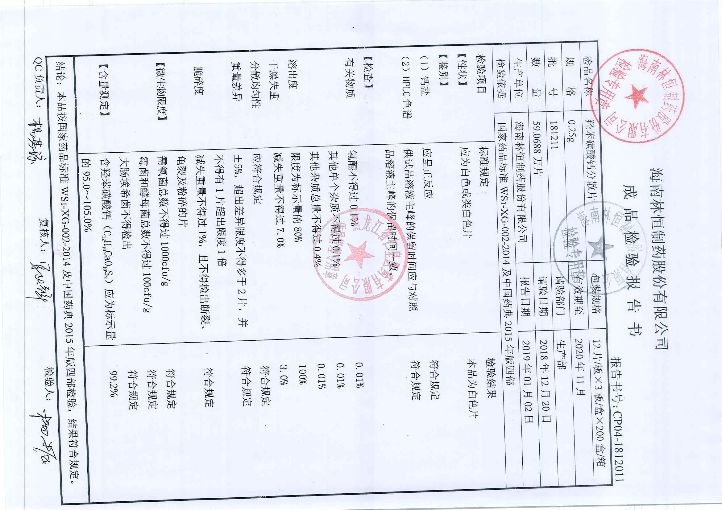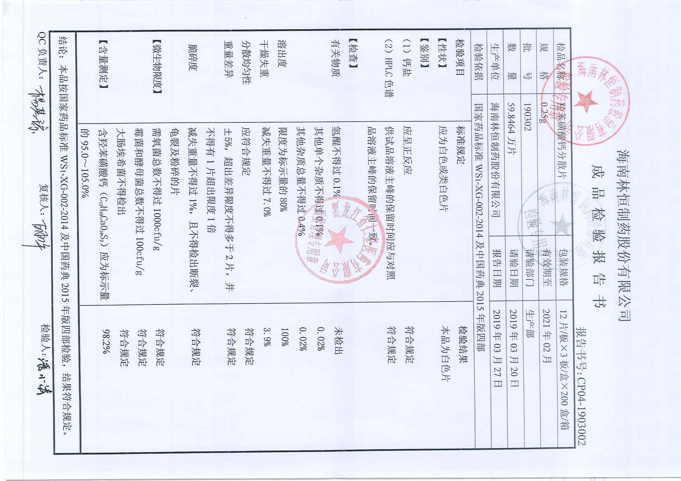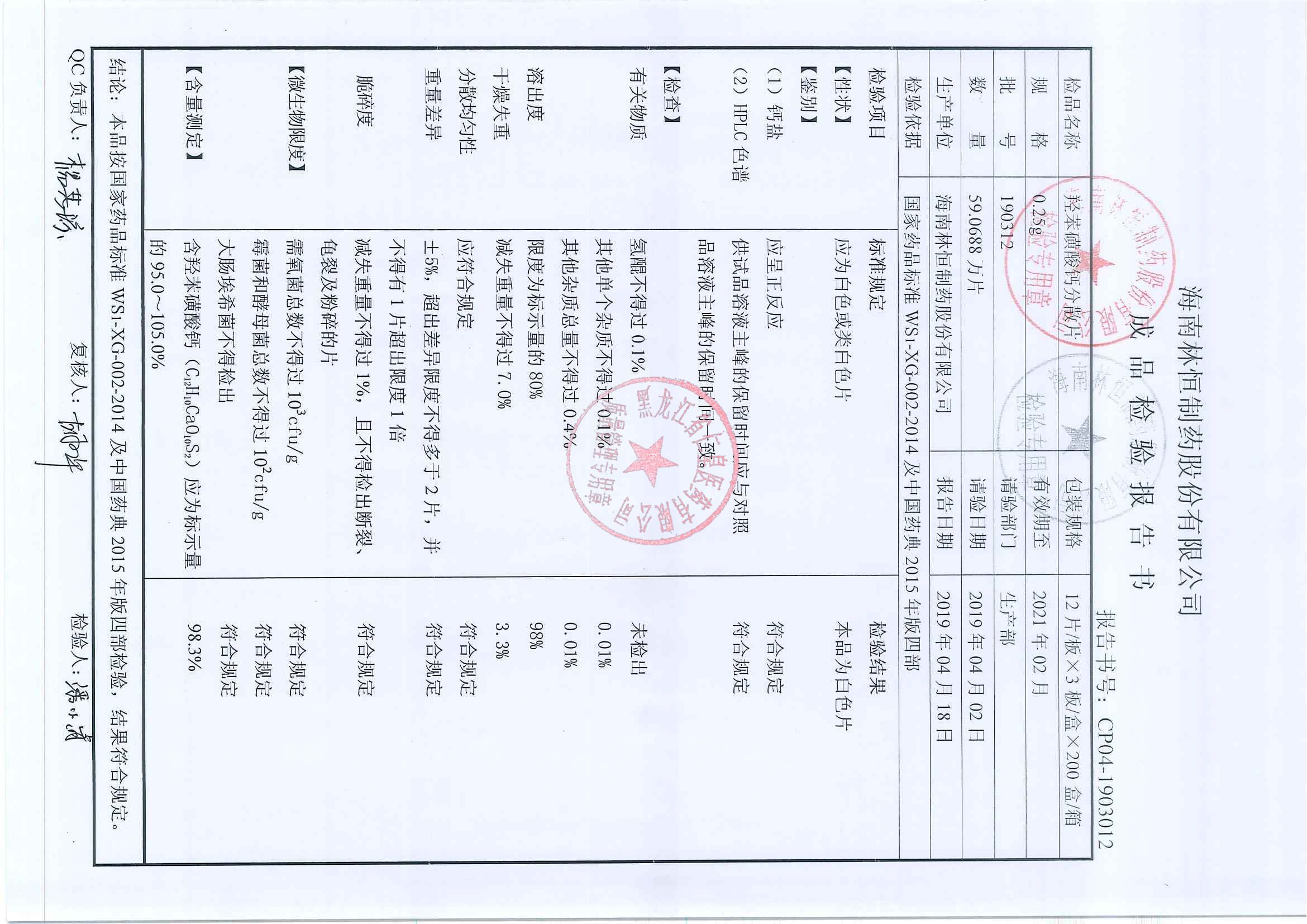 _羟苯磺酸钙分散片1