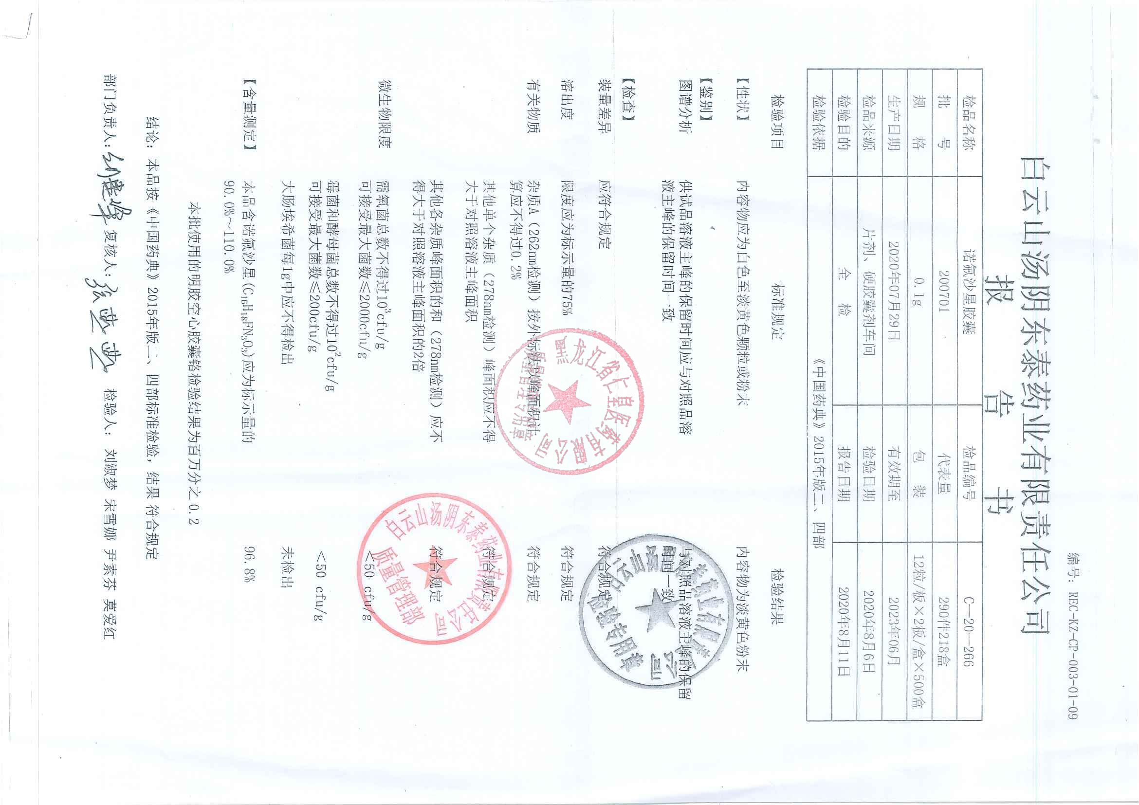 _诺氟沙星胶囊200