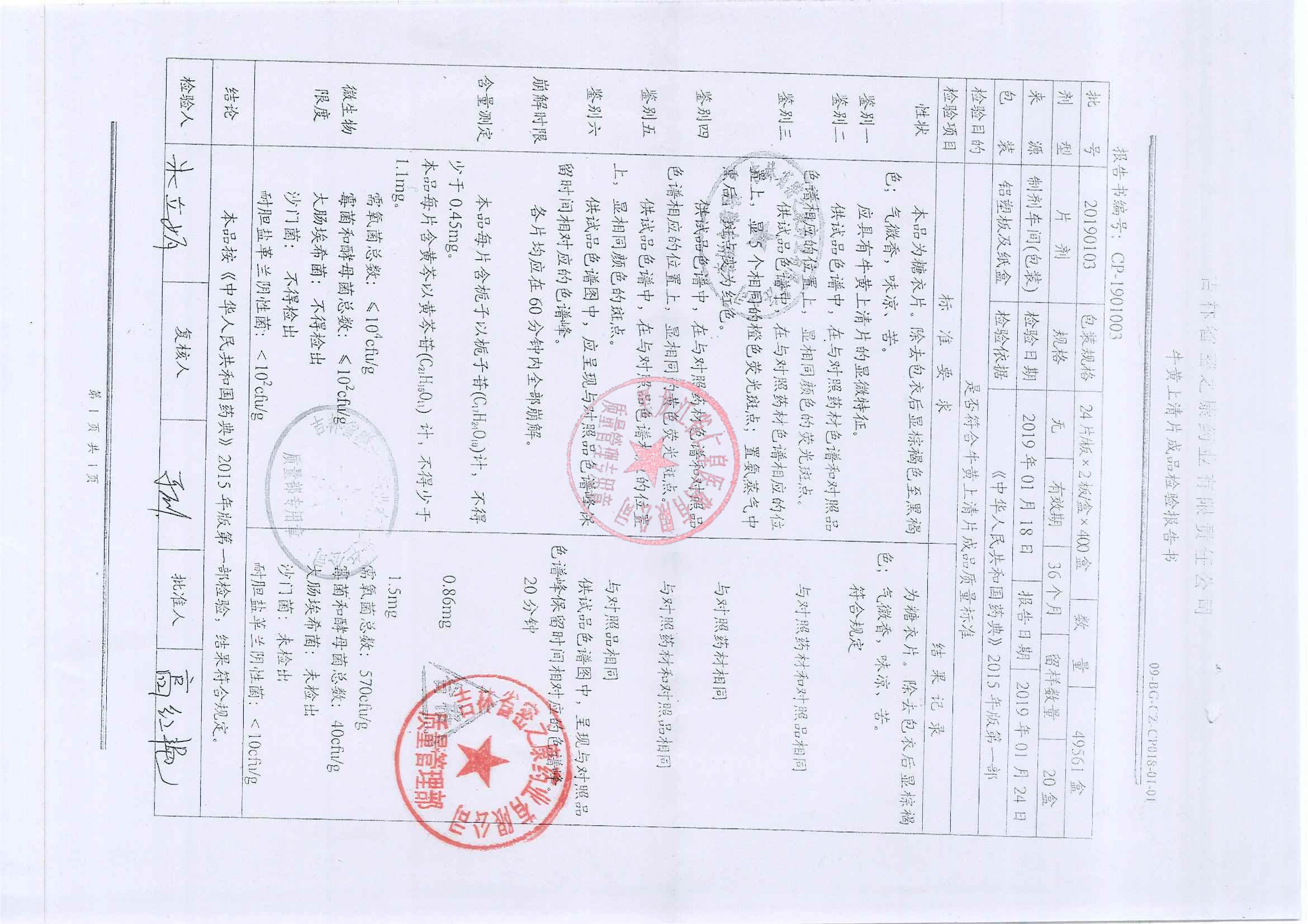 _牛黄上清片2019