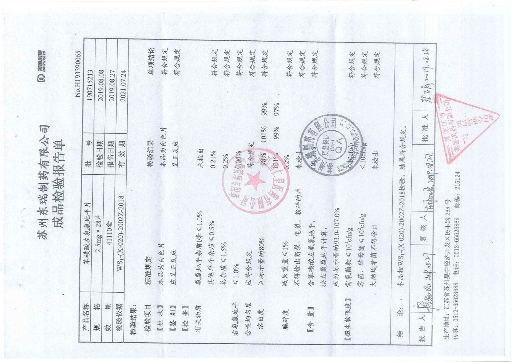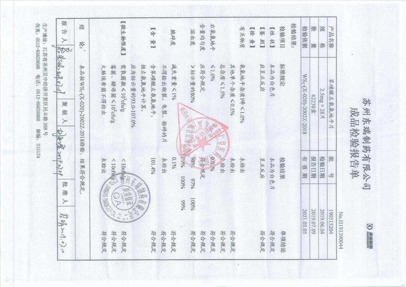 _苯磺酸左氨氯地平片