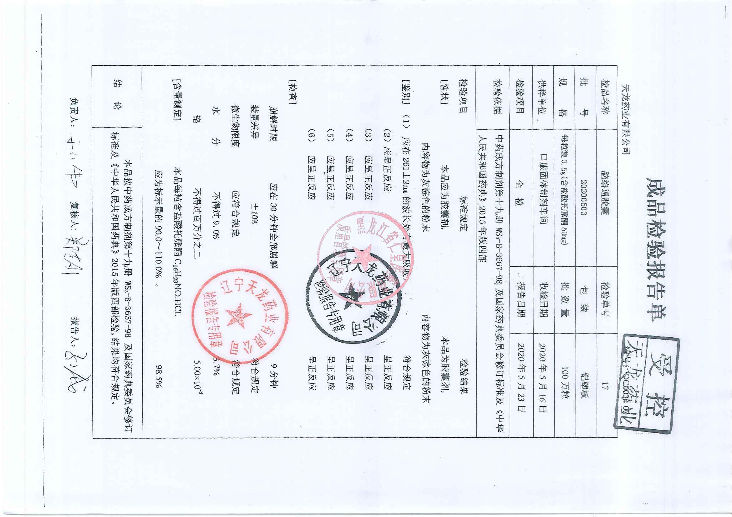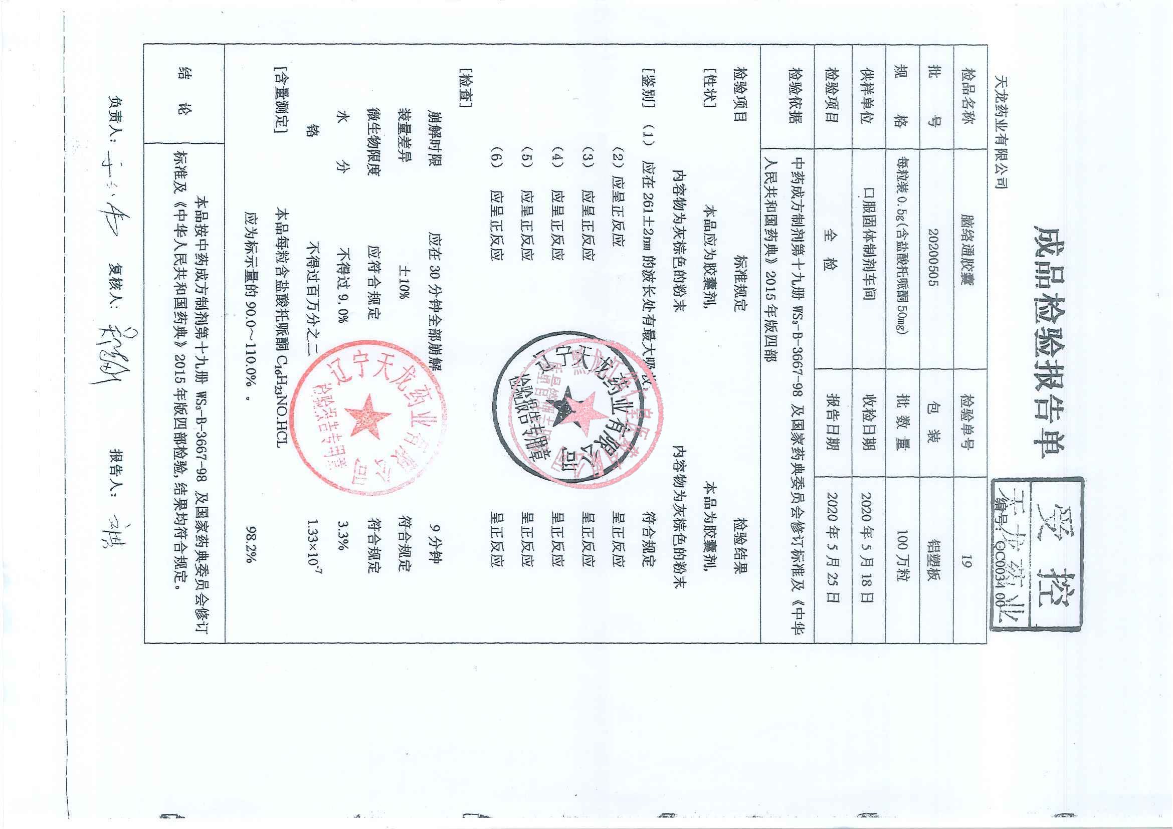 _脑络通胶囊2020