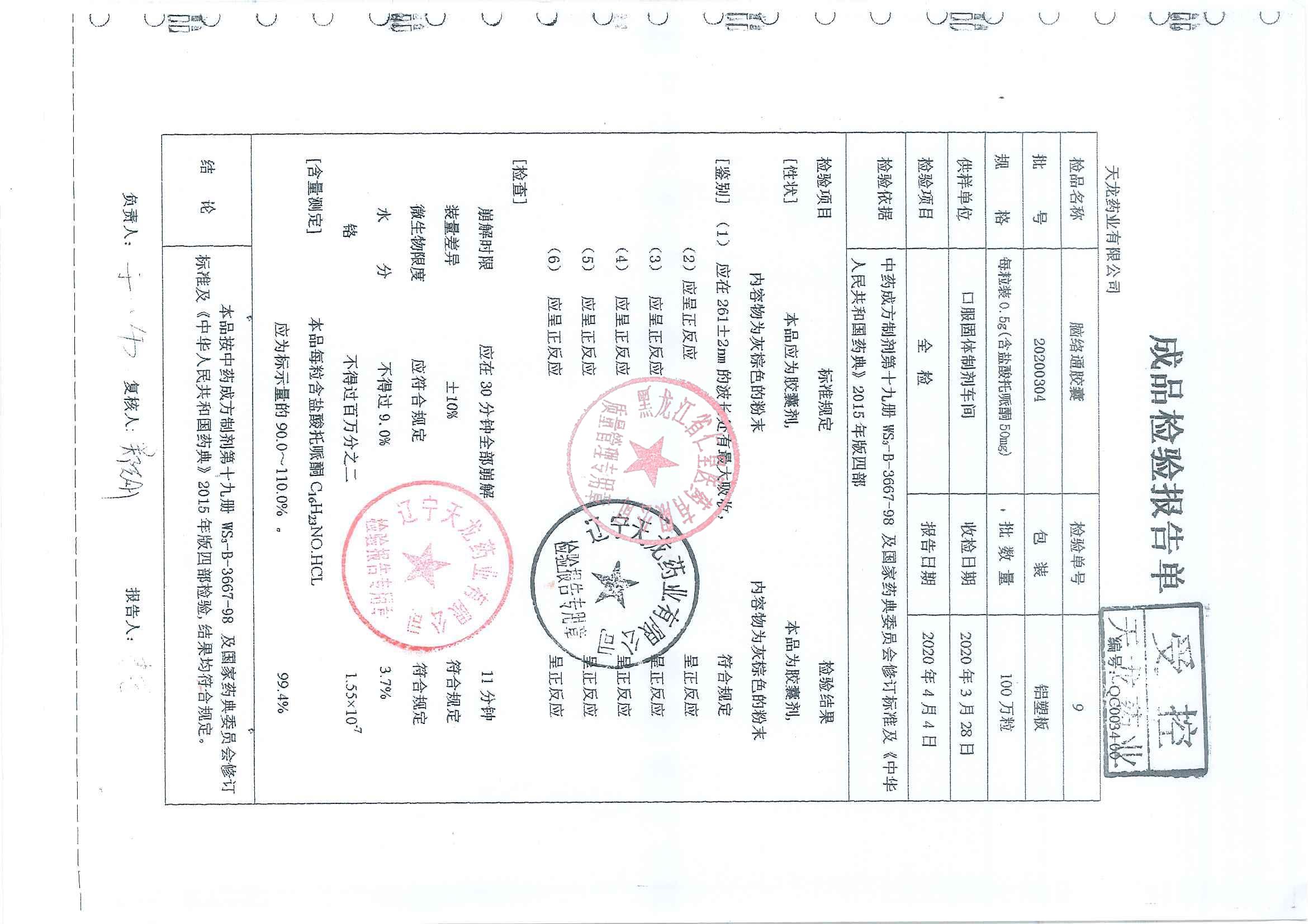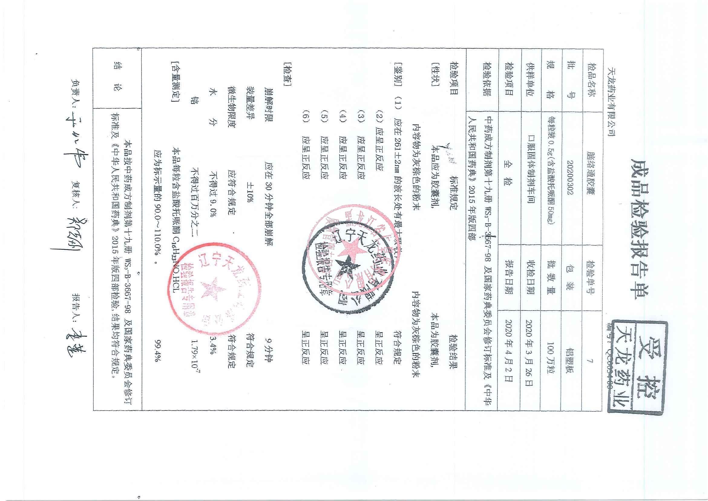 _脑络通胶囊2020