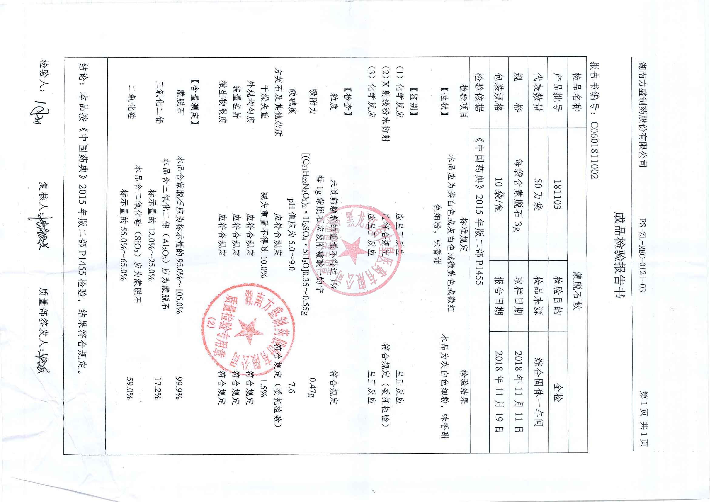 _蒙脱石散18110
