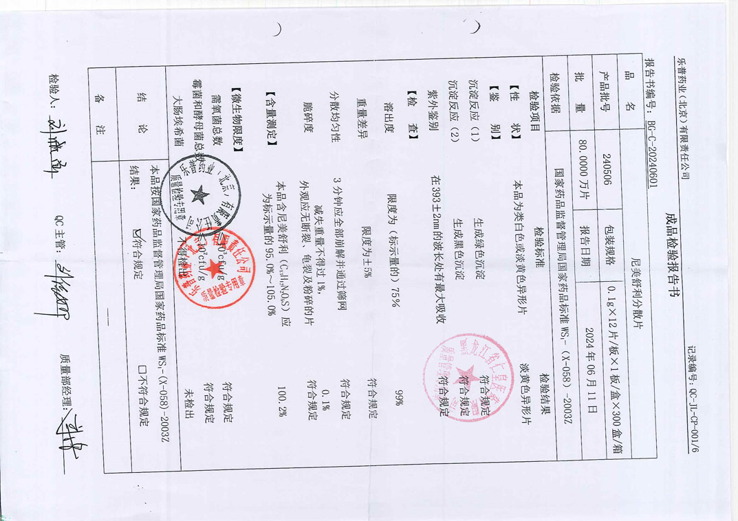 尼美舒利分散片240