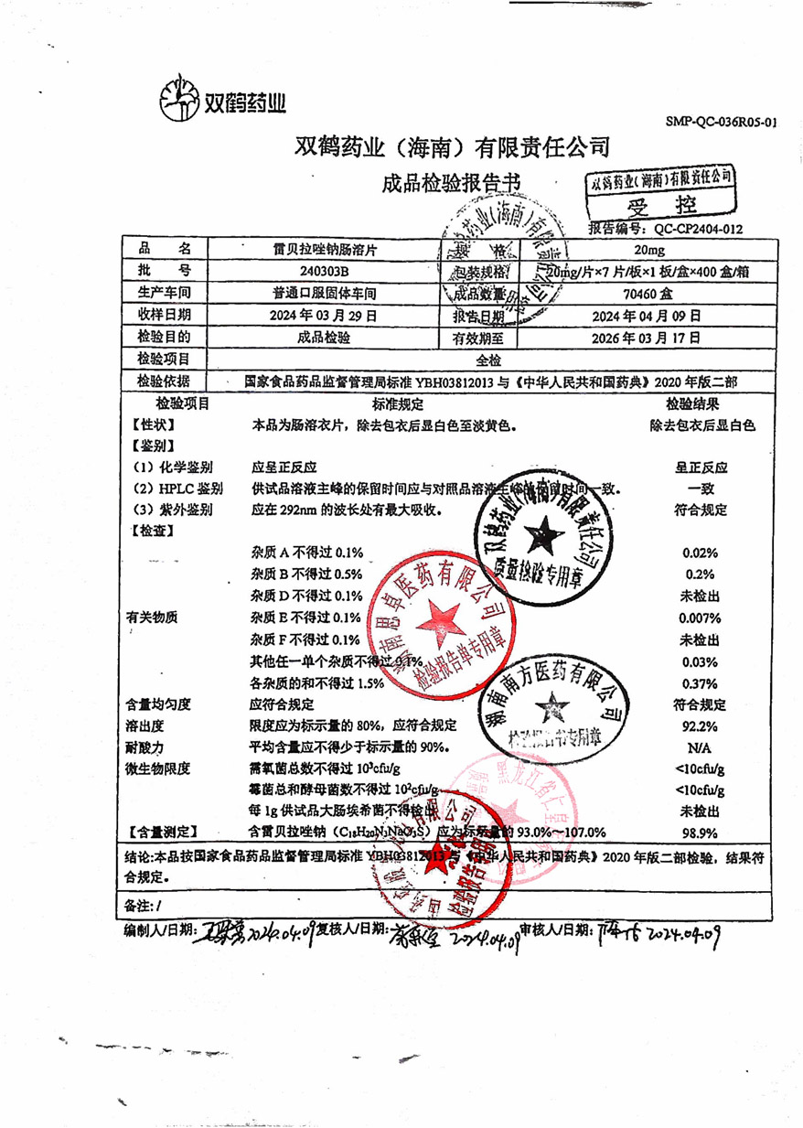 雷贝拉唑钠肠溶片24